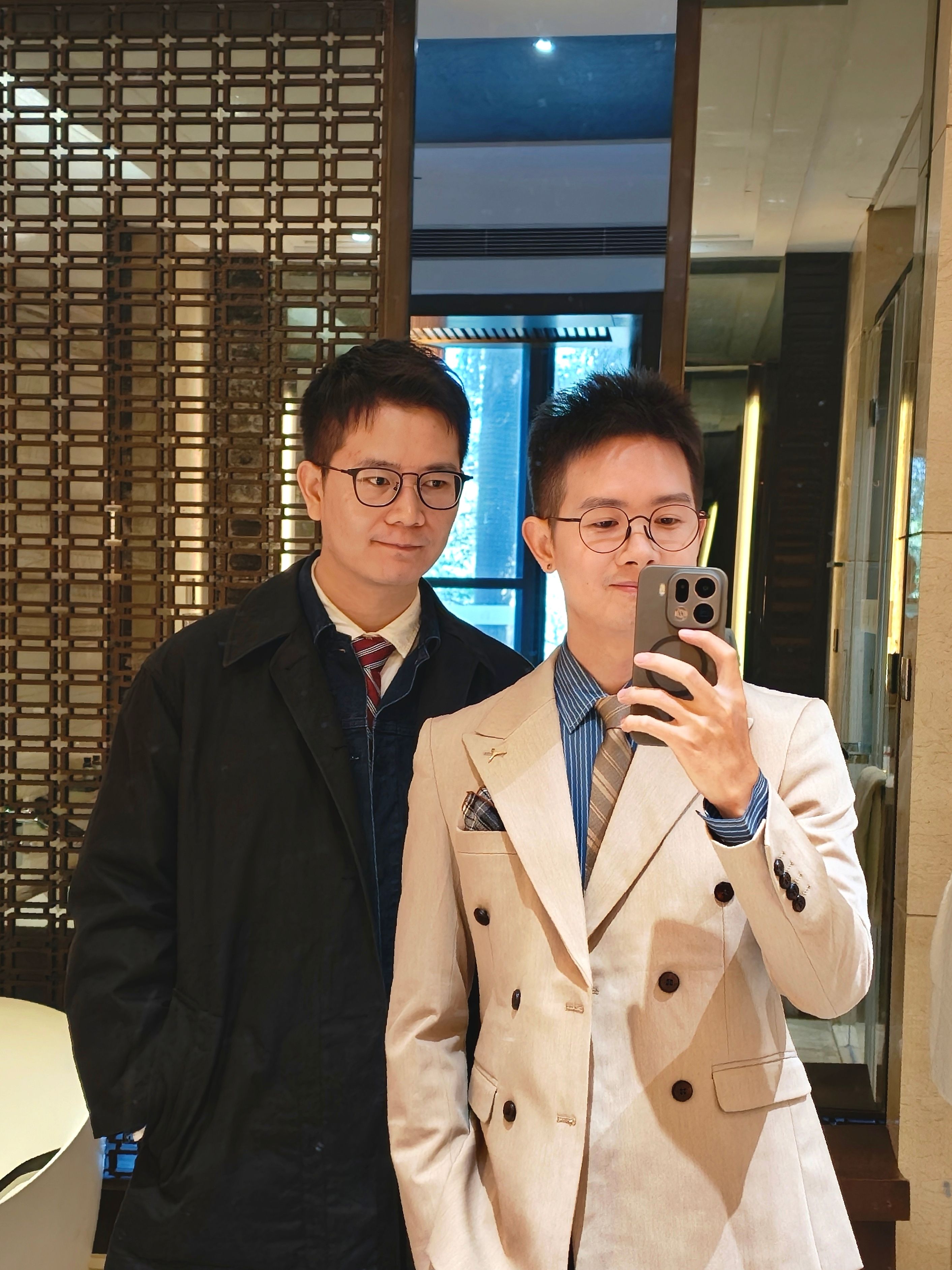 去参加小姐妹的婚礼,只考虑外套和裤子的颜色搭配的话,哪个更好?😊