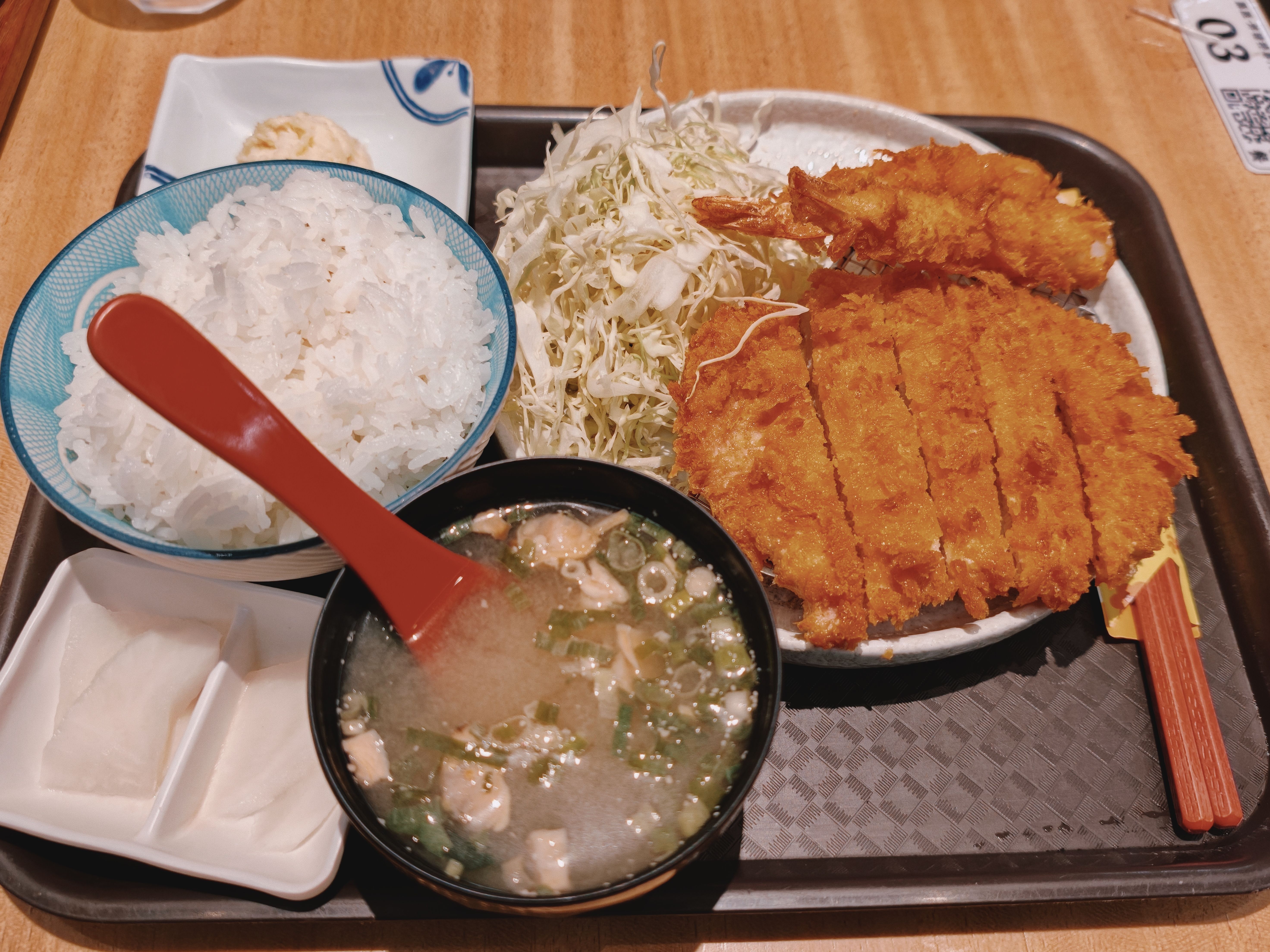 说什么手指厚的猪排根本就没有!猪排甚至有点苦味!味增汤也好难喝🥲
