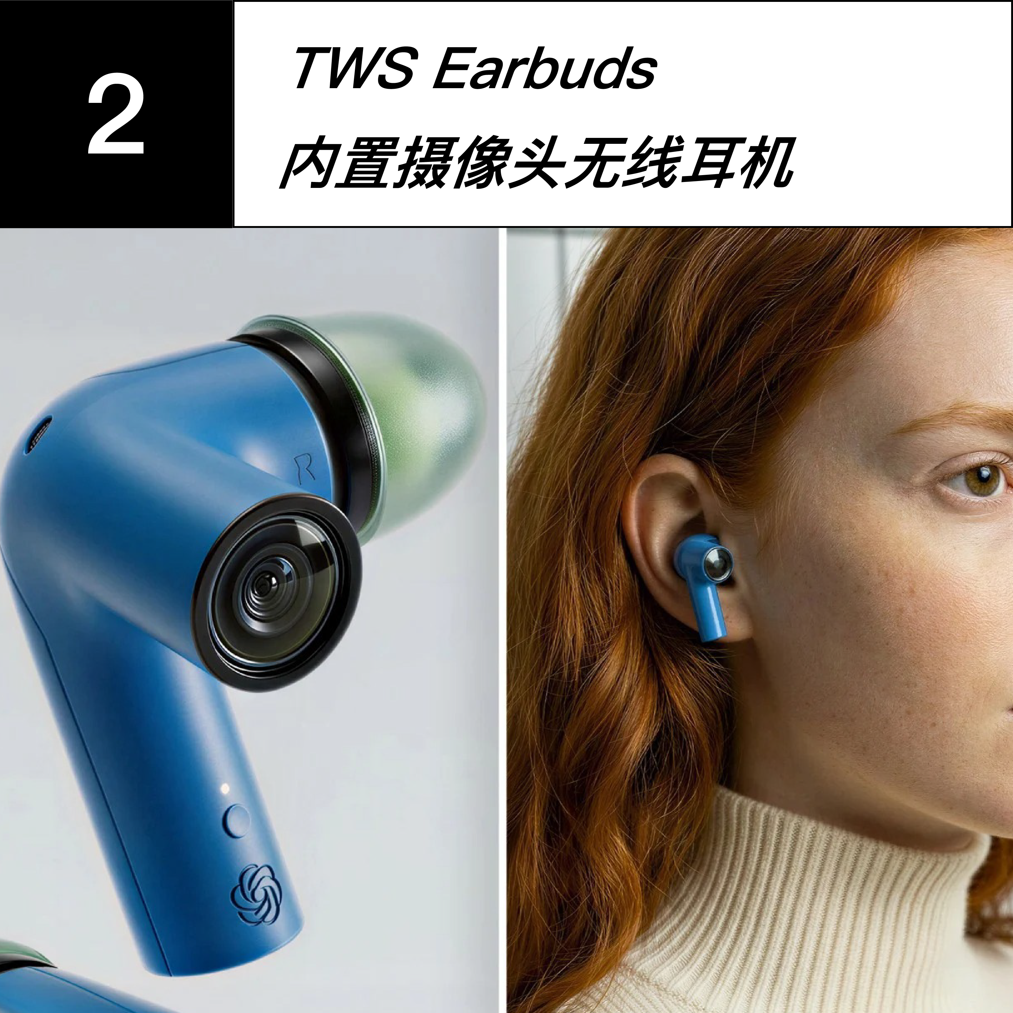 2 TWS Earbuds 内置摄像头无线耳机