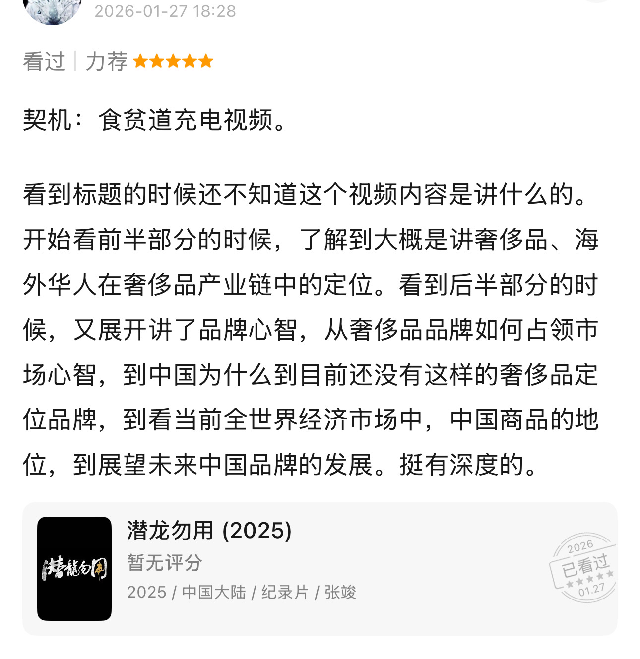 2)内容向:可以包括你这周的体验和创作。体验比如各种你感兴趣的,让你印象深刻的,值得纪念的事情,这周吃的好吃的,拍到的好看照片,看过的有意思的剧集电影视频,和朋友一起玩,你觉得有意义的消费,你觉得这周发生的社会大事件等等;创作如你写的文章、图文作品、视频、你的投资操作等,通过最简单的方式附上未来自己能找到的标记(如截图)。