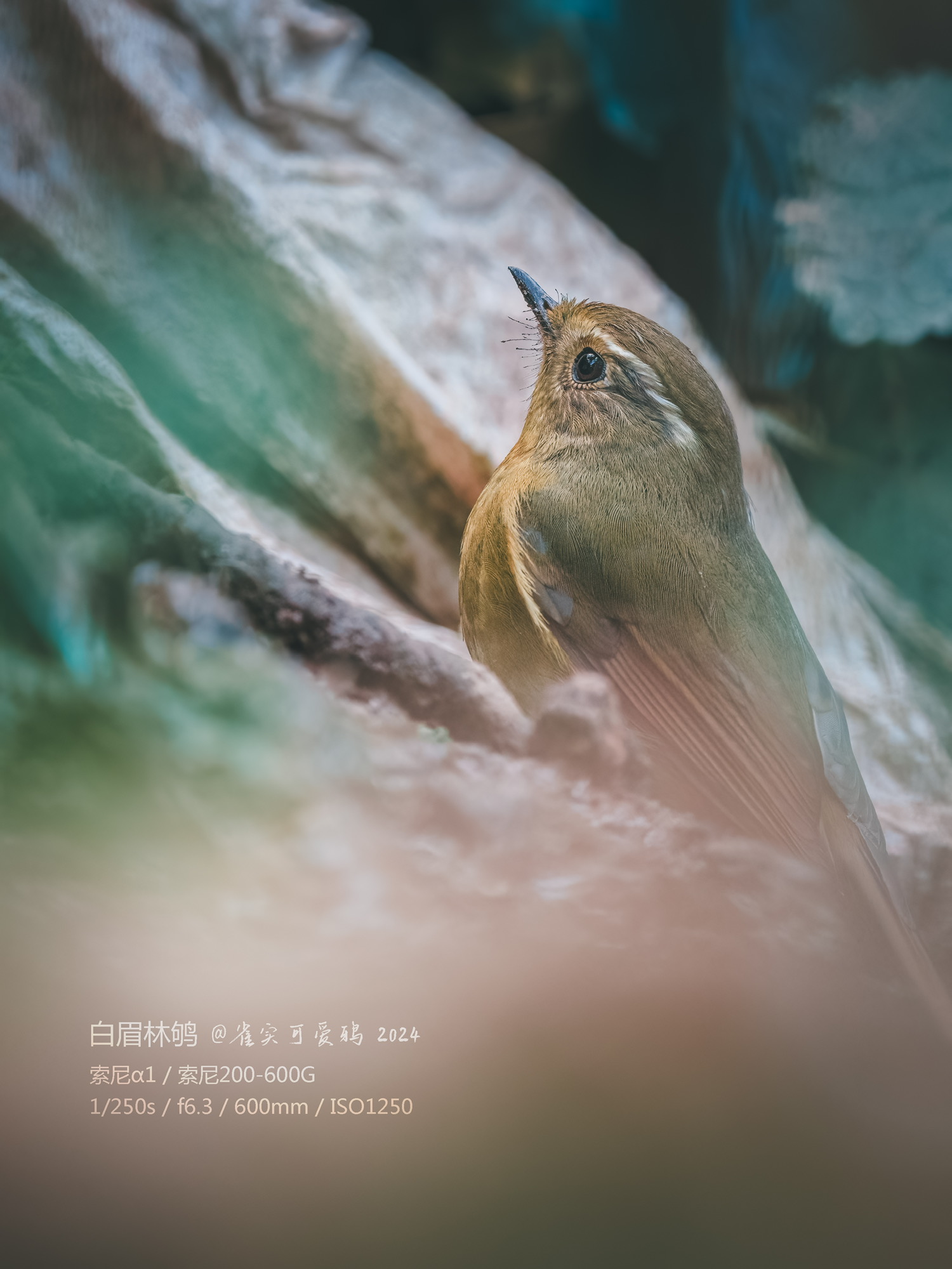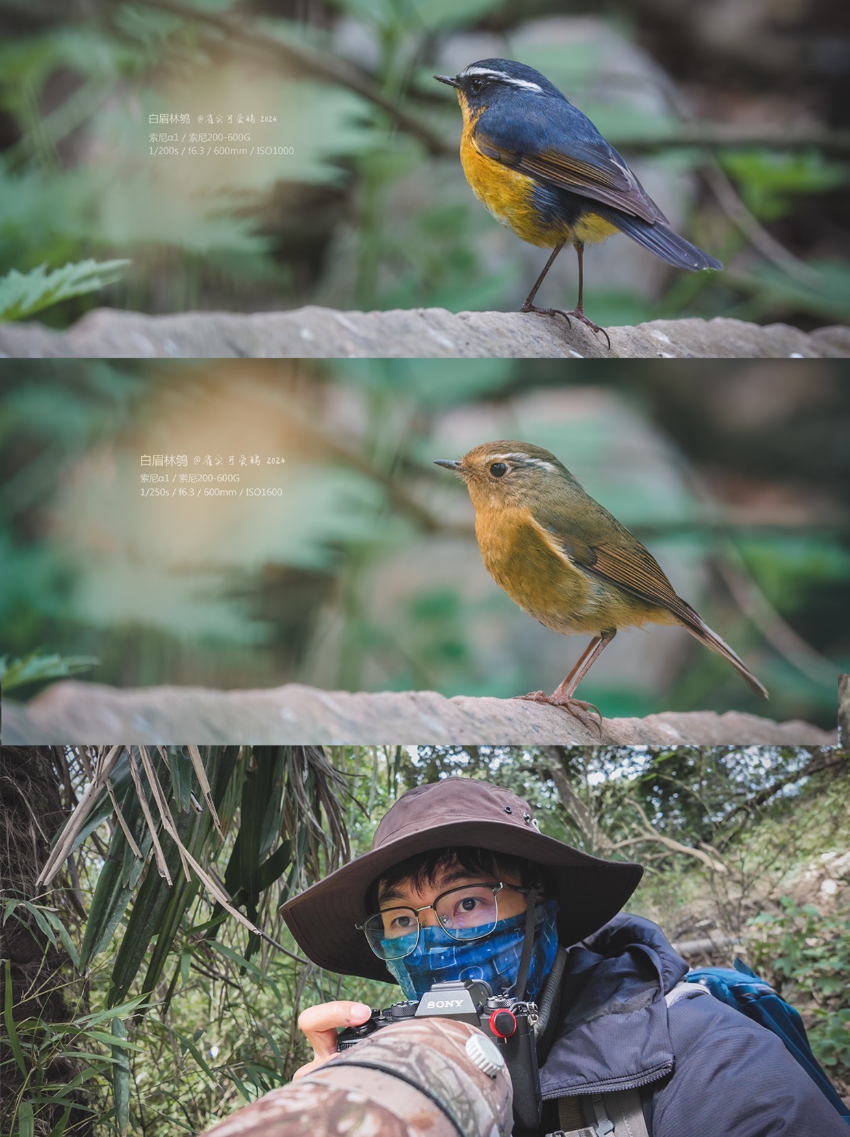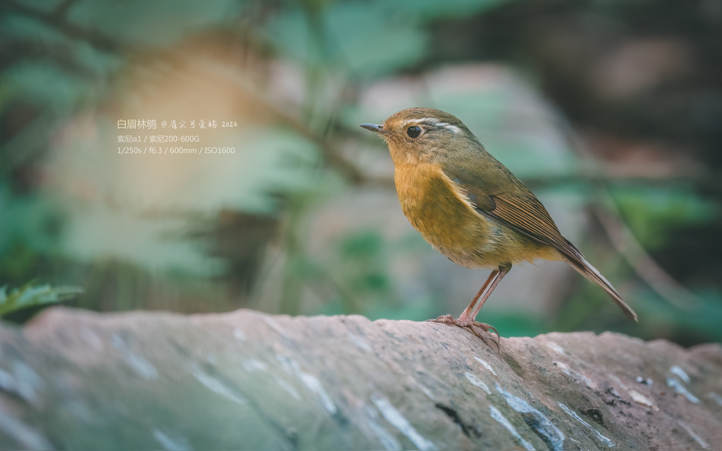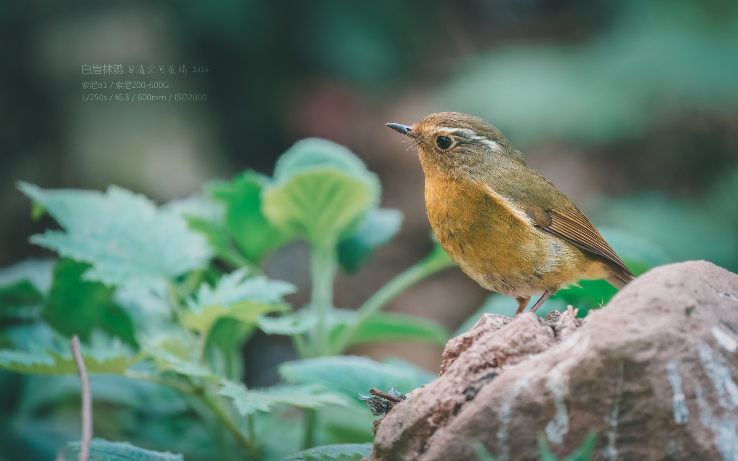 曾经也见过好几次白眉林鸲,但一直都没有拍好过。这一次我选择在灌丛暗处耐心蹲守它们。十分钟后,一如既往活泼大方的雌鸟现身了,它显然注意到我了,抬头注视了几眼然后接受了我的存在,自顾自开始寻找食物,我也一直给它在相机里留下倩影。