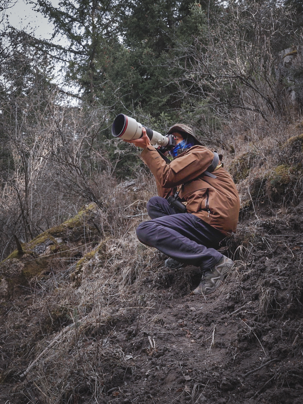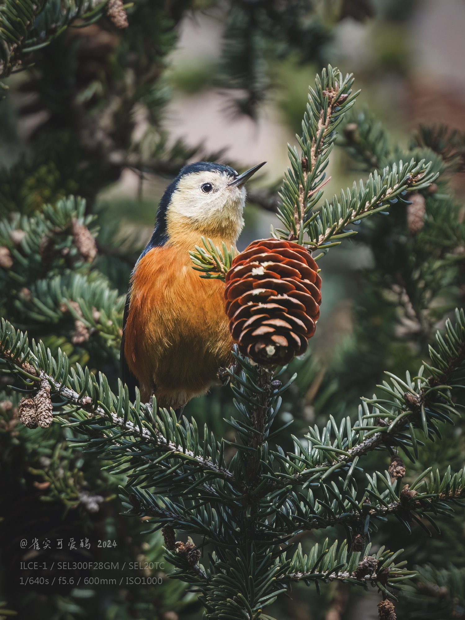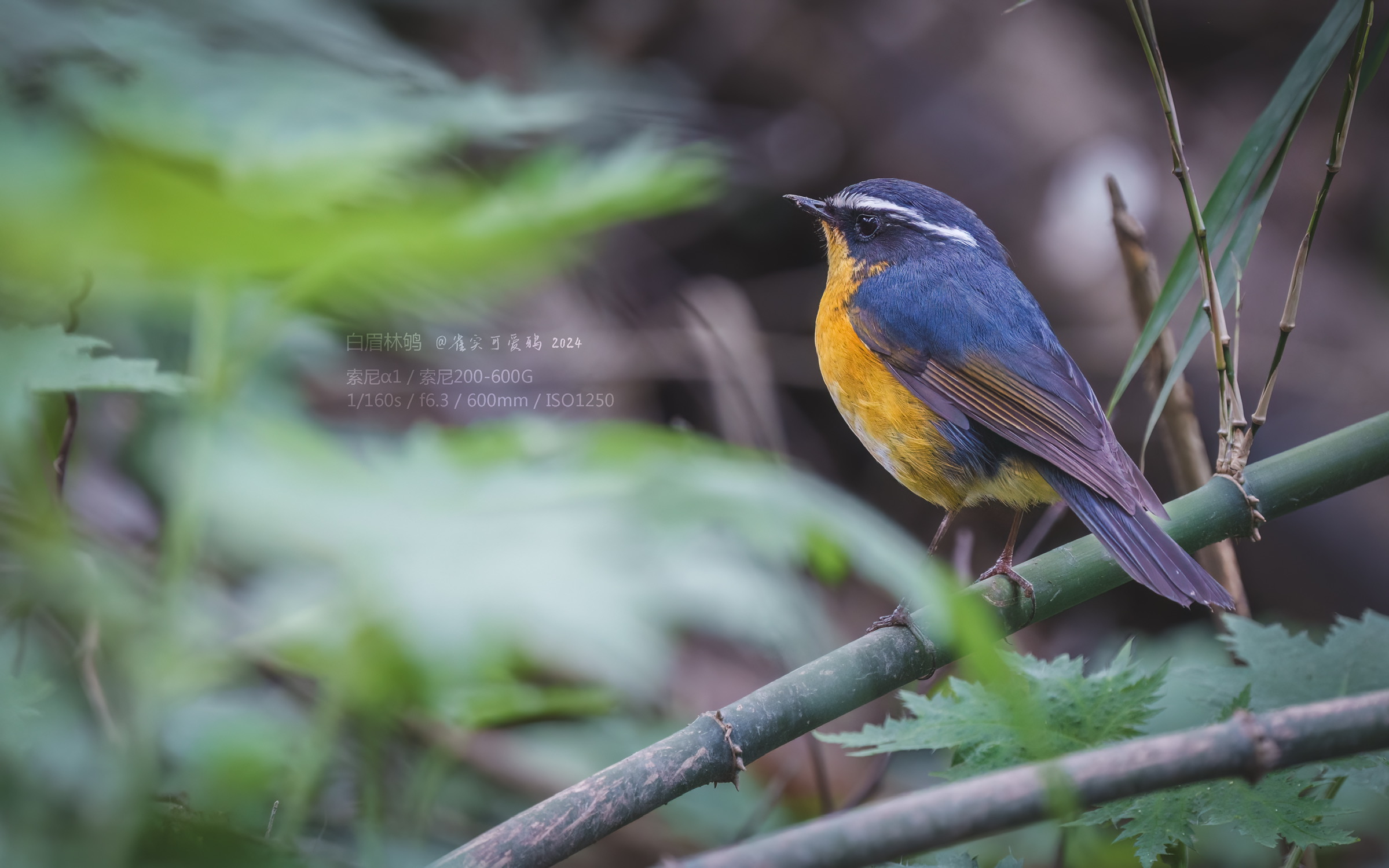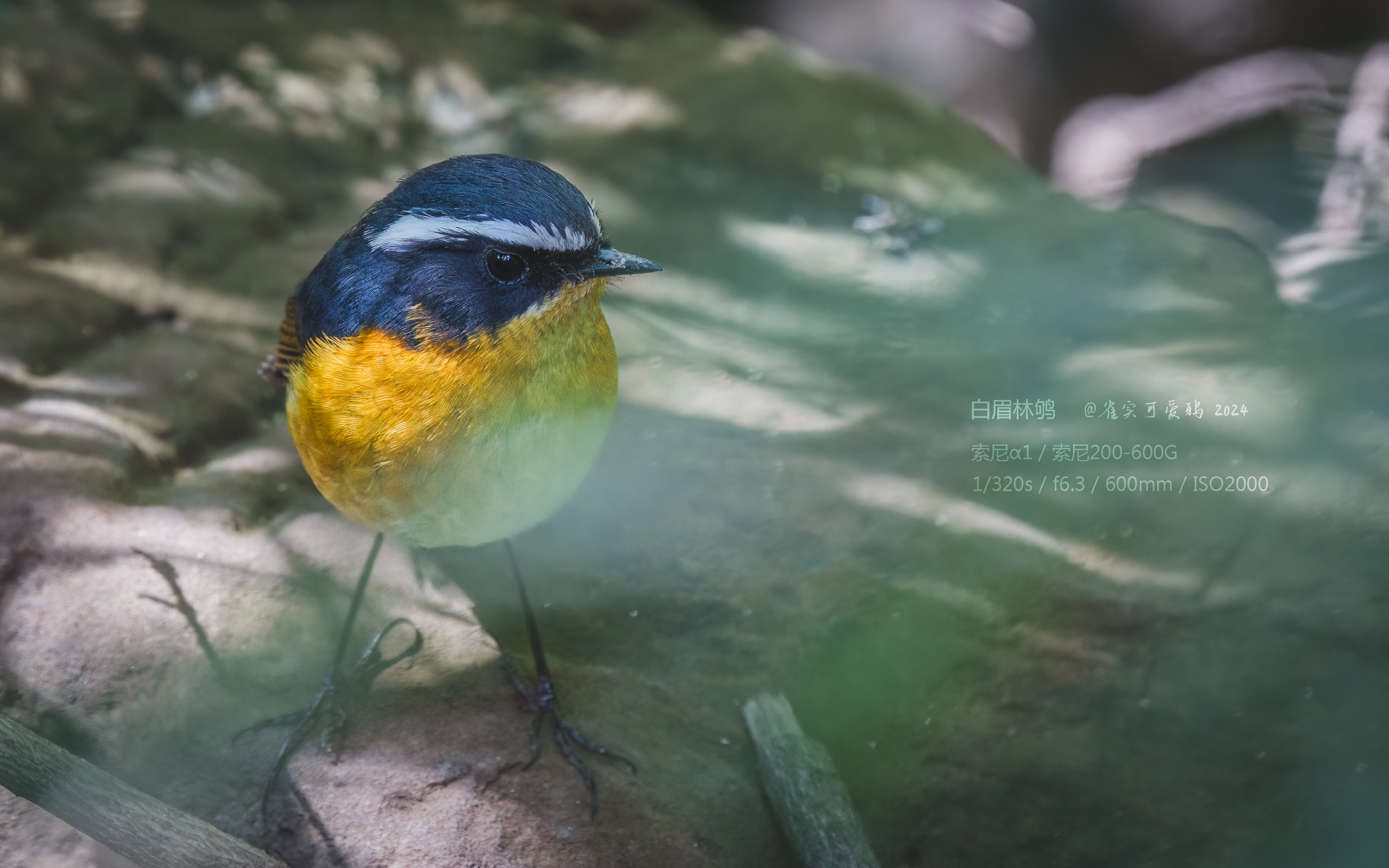 曾经也见过好几次白眉林鸲,但一直都没有拍好过。这一次我选择在灌丛暗处耐心蹲守它们。十分钟后,一如既往活泼大方的雌鸟现身了,它显然注意到我了,抬头注视了几眼然后接受了我的存在,自顾自开始寻找食物,我也一直给它在相机里留下倩影。
