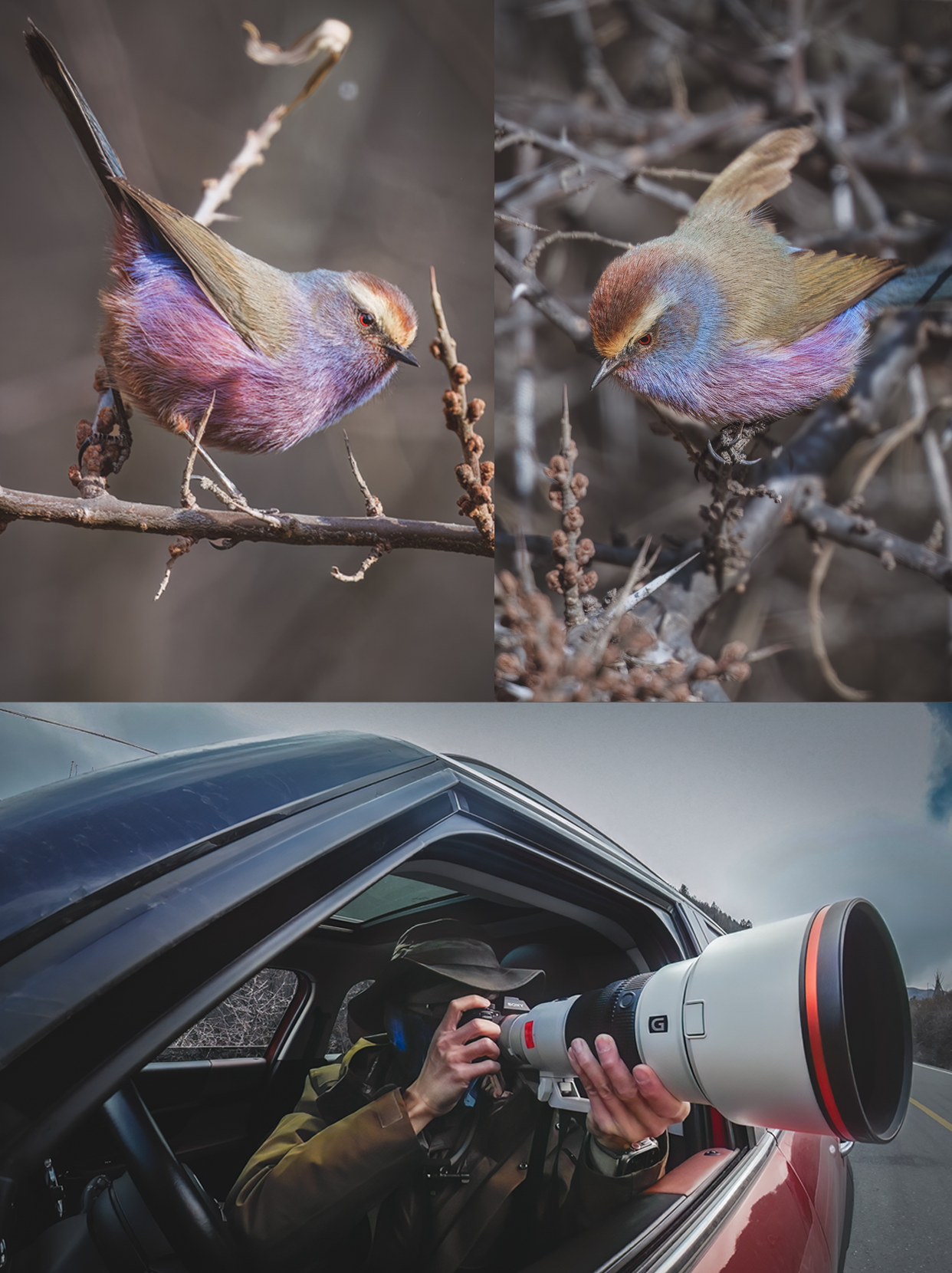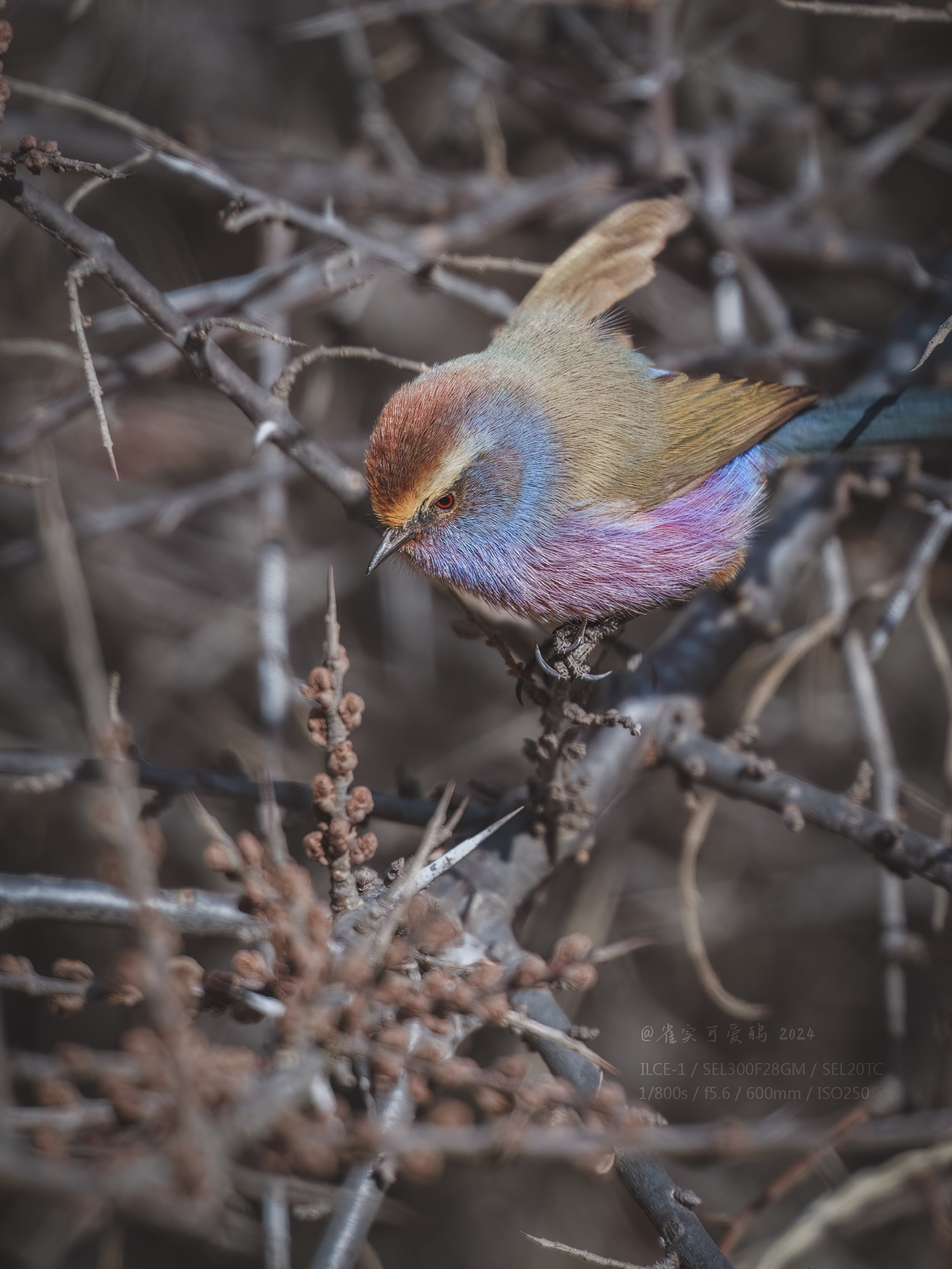 雄鸟在雌鸟活动了三五分钟之后才露面,并且表现得十分胆小谨慎。它几乎沿着雌鸟的活动轨迹行进,所以才有了首图相同位置的照片,得到了绝佳的相同环境雌雄对比照!这就是无干扰野外观察拍摄的乐趣,离我最近距离可能就只有3、4米,被它们信任的感觉是真好!