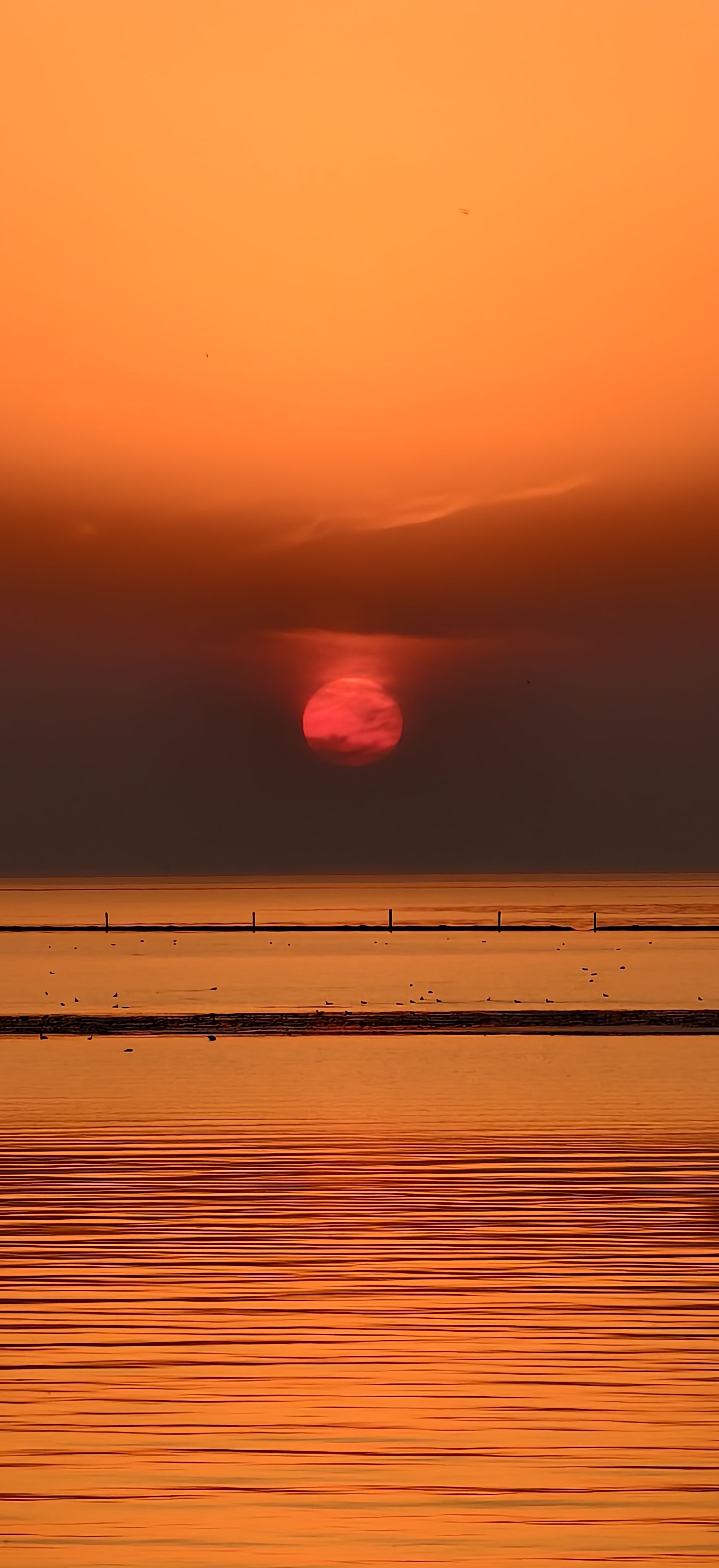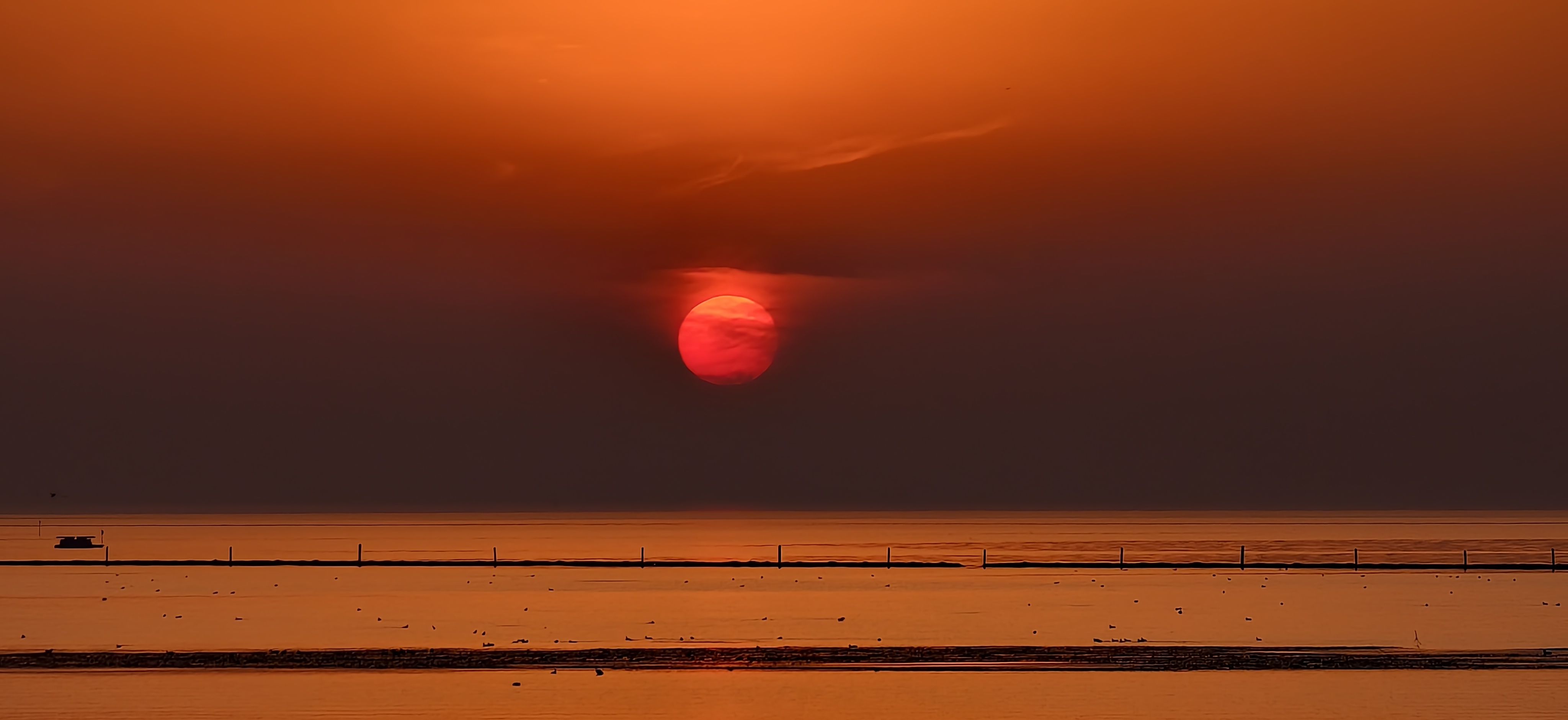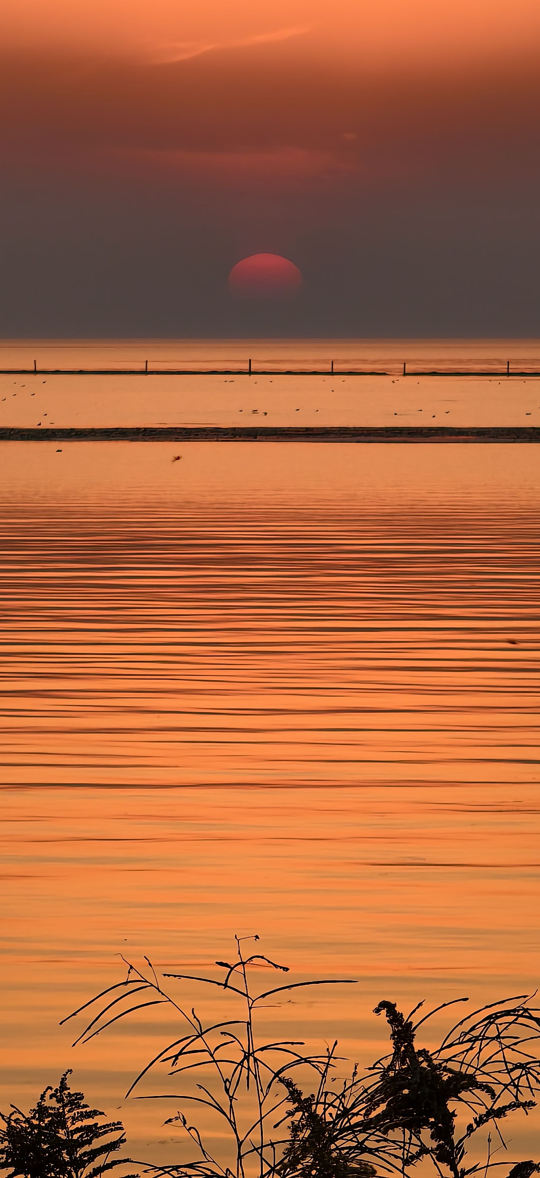 湖边落日