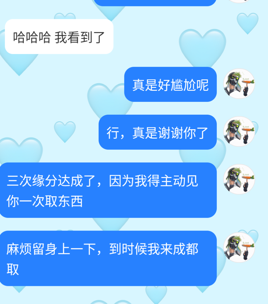 得,我东西掉酒店他给我拿到了。