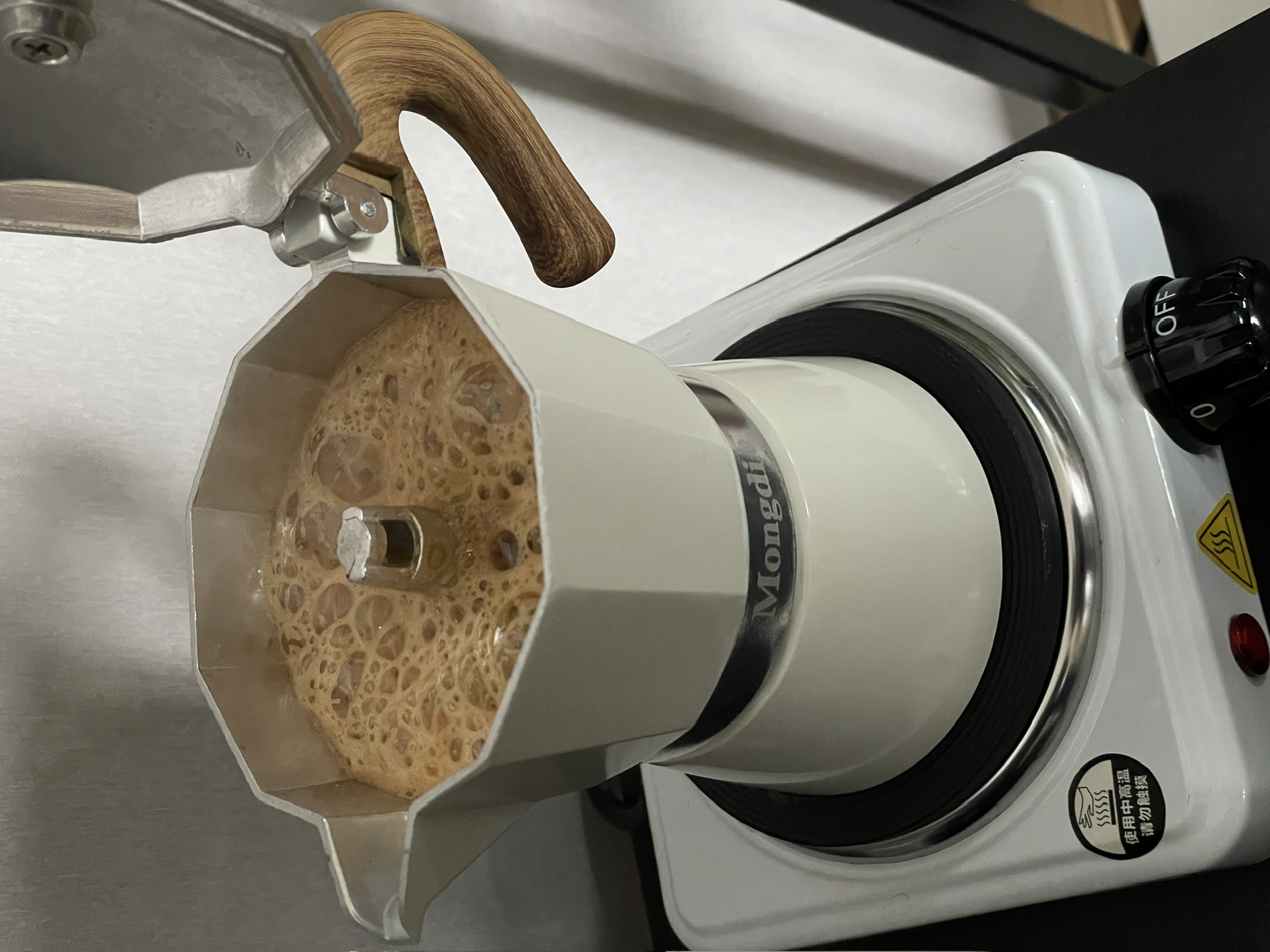 给妈妈终于配置了一个摩卡壶,今天终于出现明显的‘油脂’,以后外出也要行李箱再带个摩卡壶了。