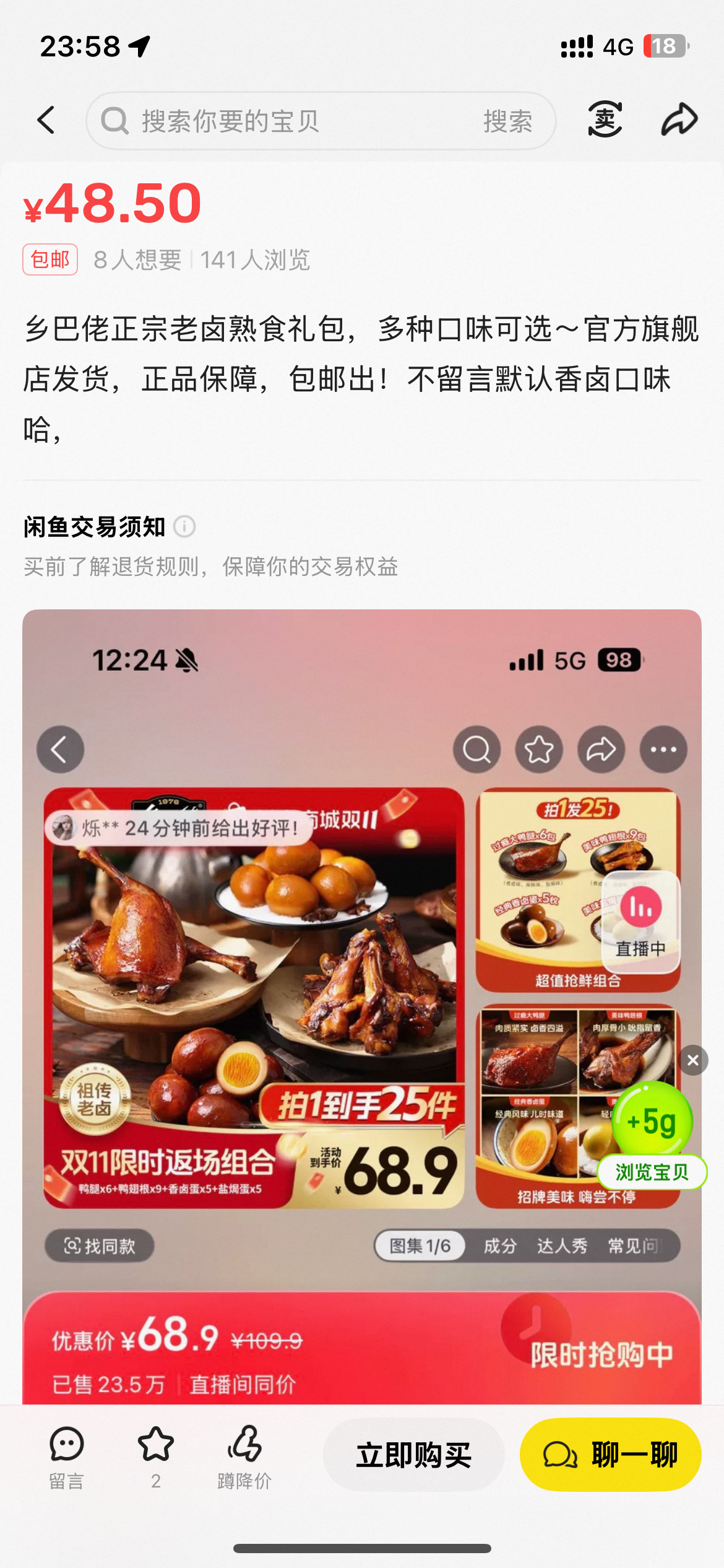 现在我刷到有感兴趣的抖音直播间,我直接搜闲鱼