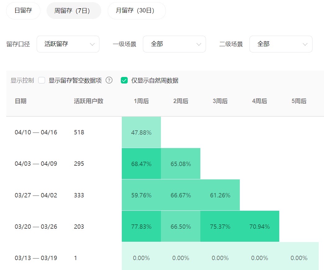访问、留存,一片飘绿