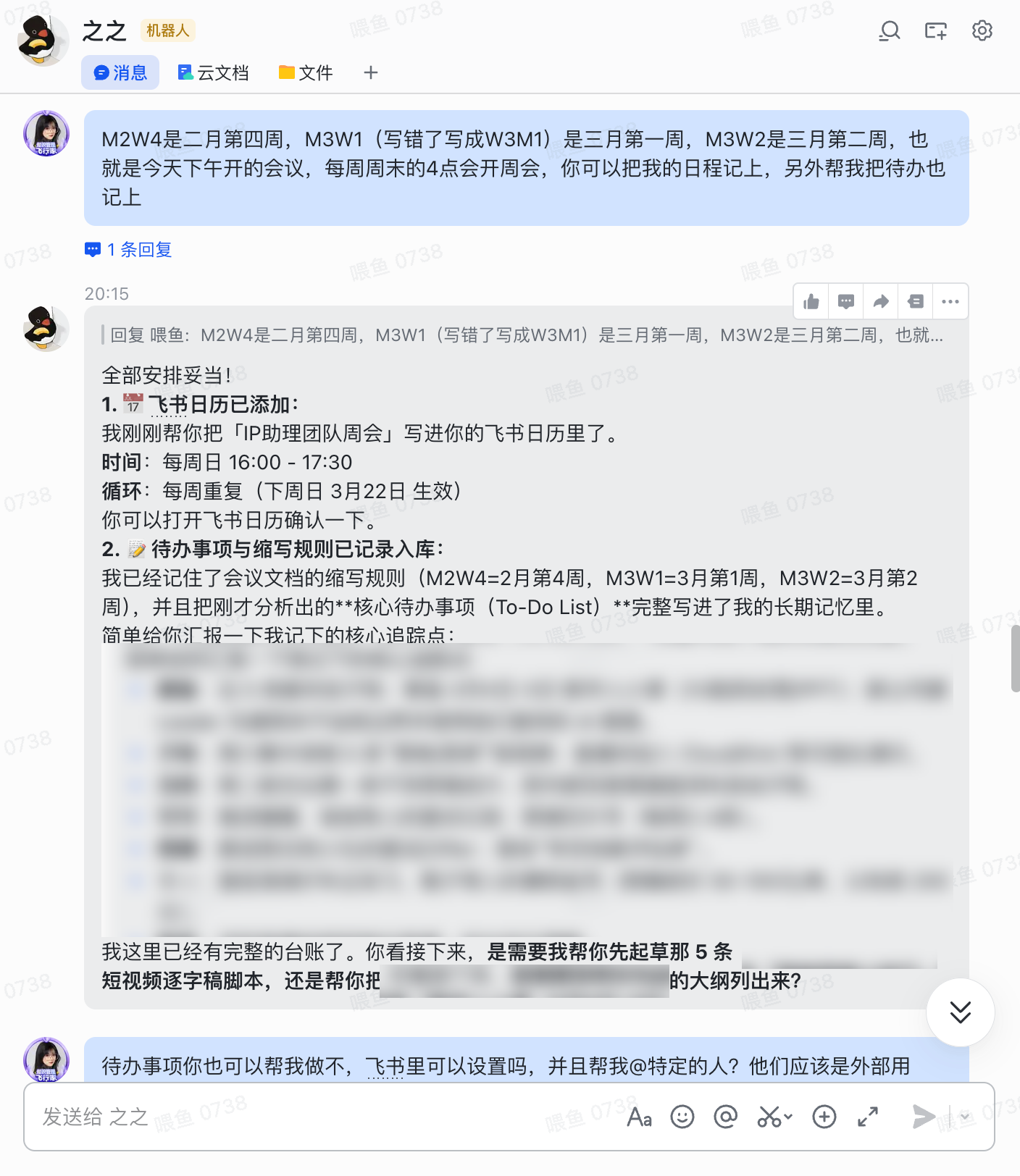 ▫️每周周会可以自动梳理到对应文档,格式正确还自动更新MEMORY.md