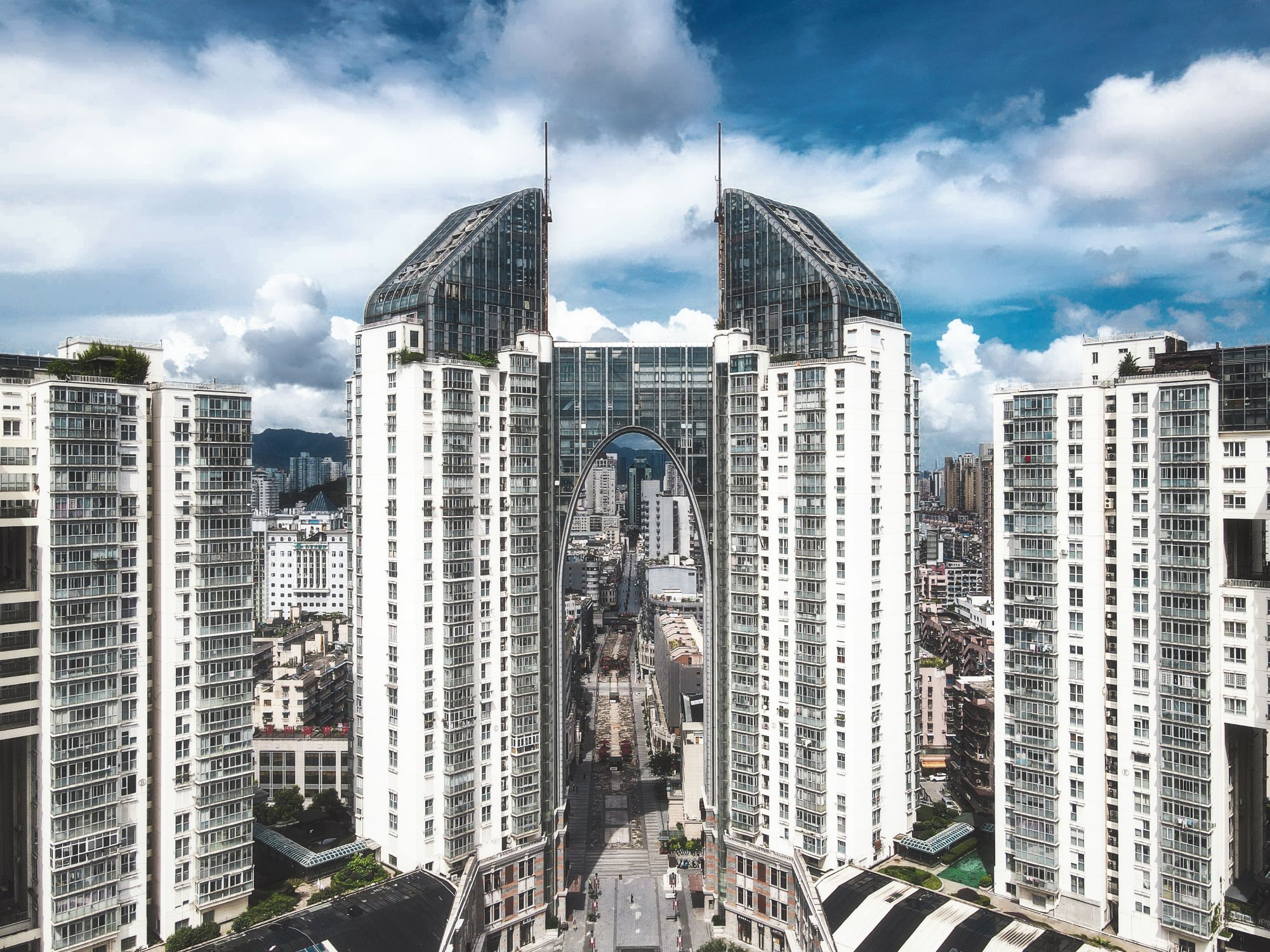 新国光大厦前则是温州代表性的商业街—蝉街和五马街。一座挺立的大厦不仅仅是冰冷的建筑,更多的是温州人精神上的象征,诠释一种文化的调合力。