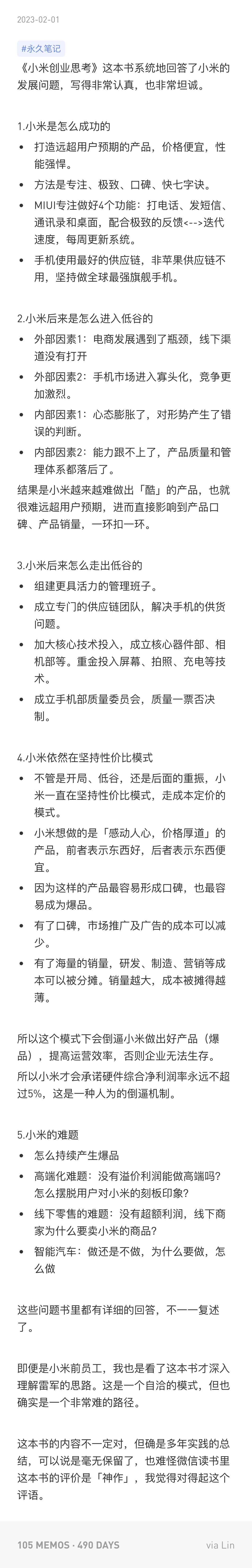 内容也非常坦诚,基本都小米成功和失败的经验都说清楚了,可以说是毫无保留了。