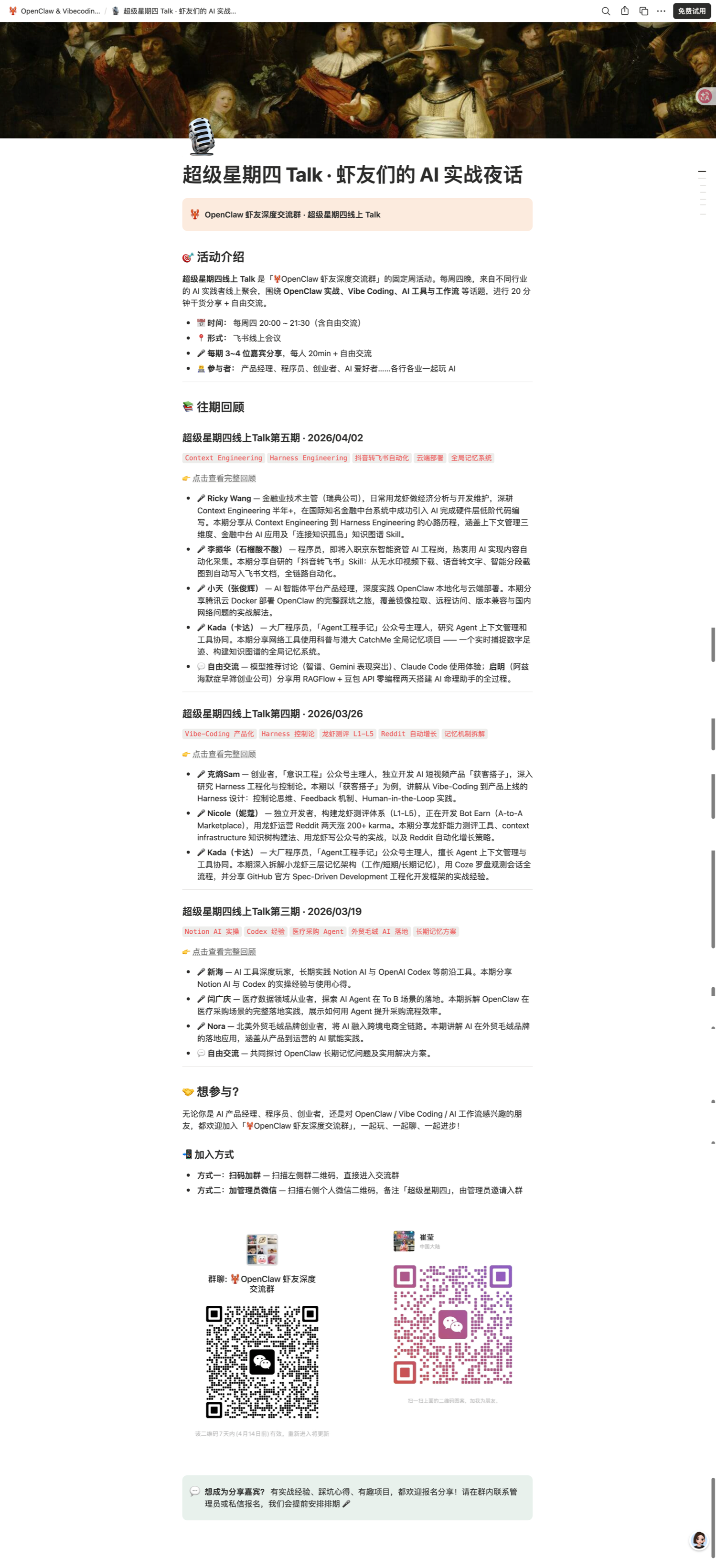 欢迎感兴趣的朋友加入,周三 20:00 见 🦞