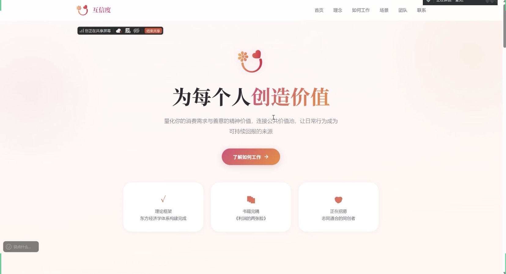 所以我们想探索一条路:用共有制和贡献值的方式,让大家在 AI 的加持下专注做自己的产品,同时通过社群互相放大——你的产品被更多人看见,你的贡献有真实的回报,最终每个人都能靠自己的产品过上更好的生活。