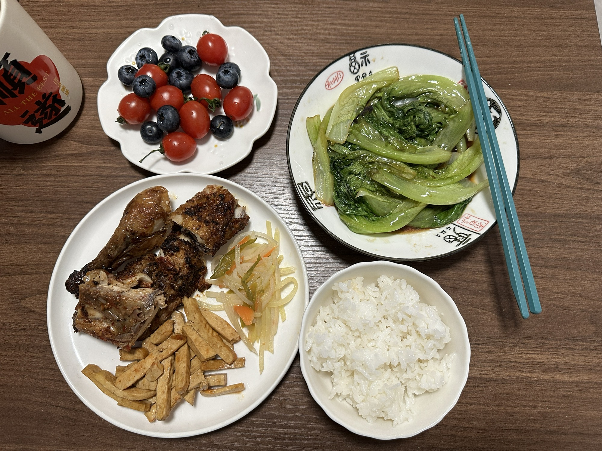 中午剩的半份盒饭+回家炒个生菜