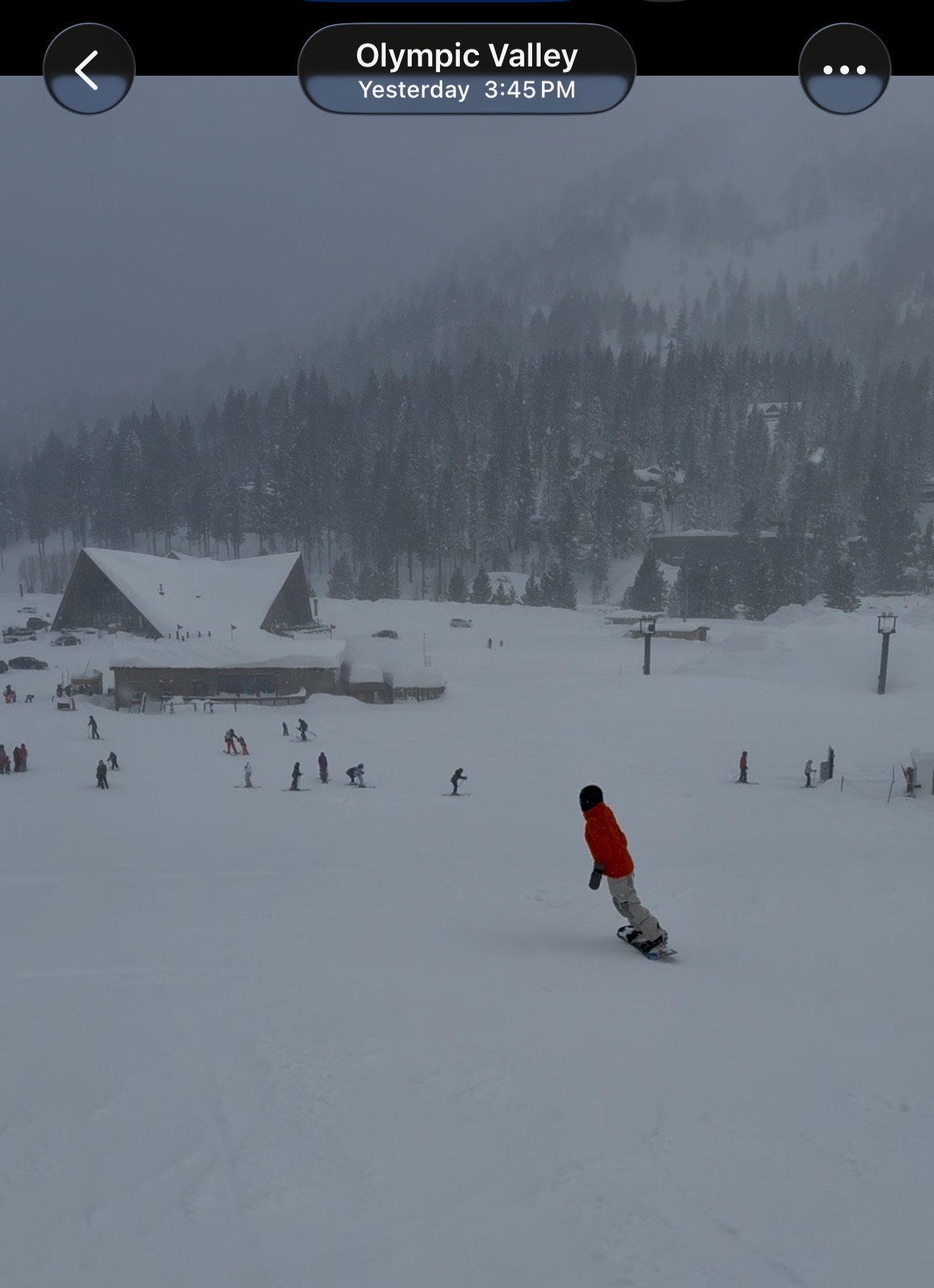 体验了一把暴风雪里挖车,然后在能见度时而为零的路况下龟速爬行到雪场。坐缆车时遇到一个中国女生,凌晨4点Santa clara开车6h来Palisades练。人到底能为滑雪付出多少!