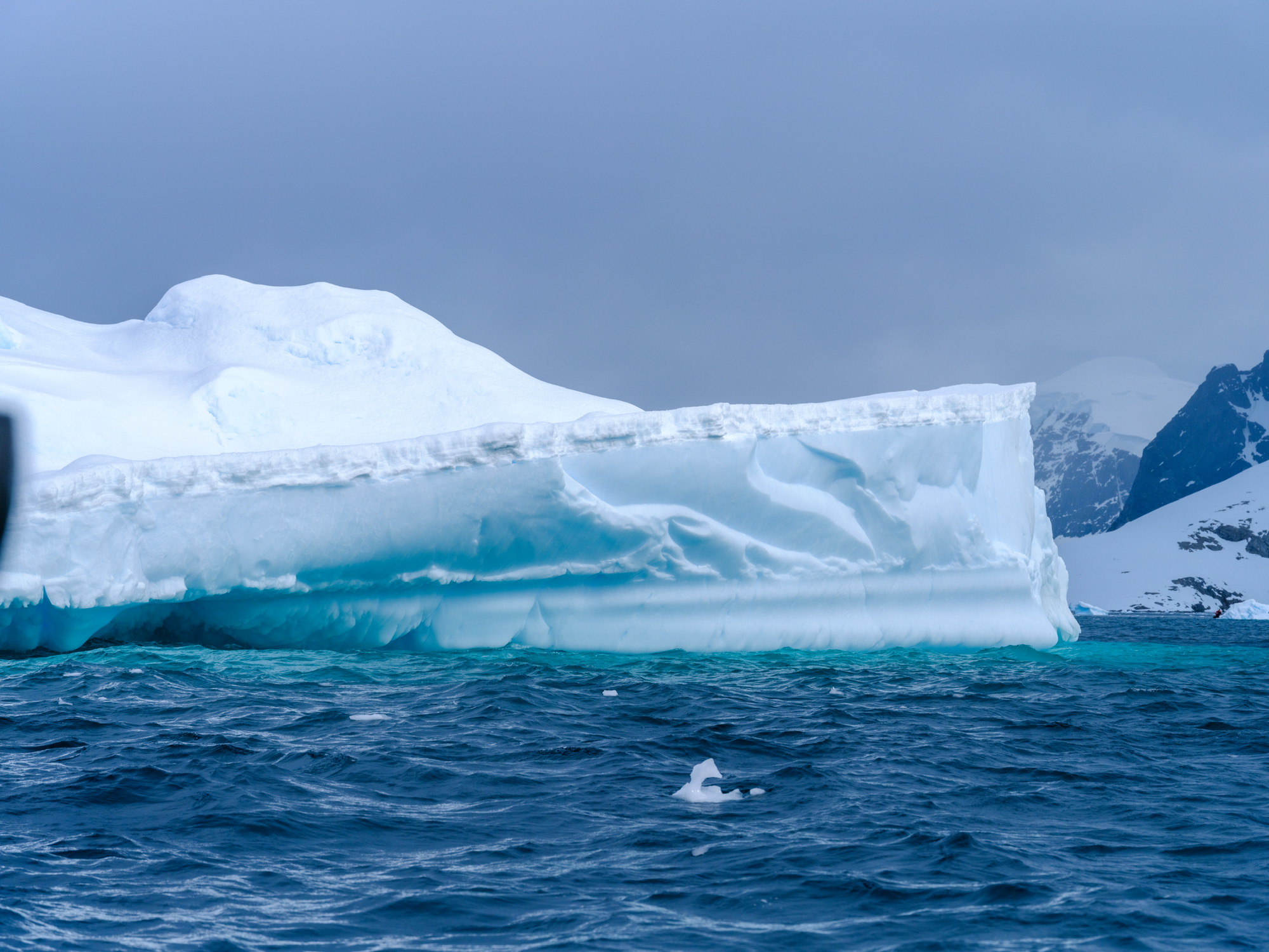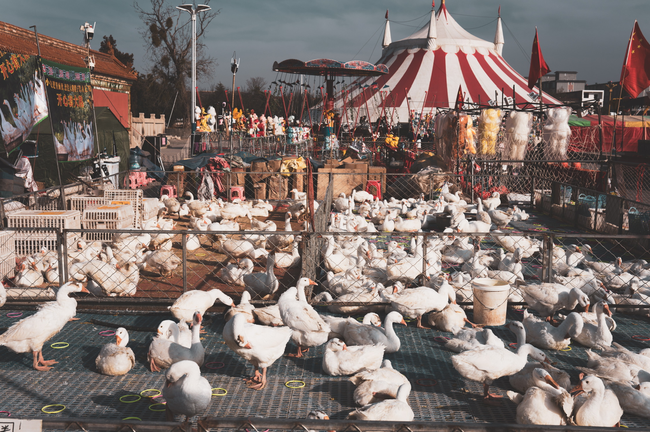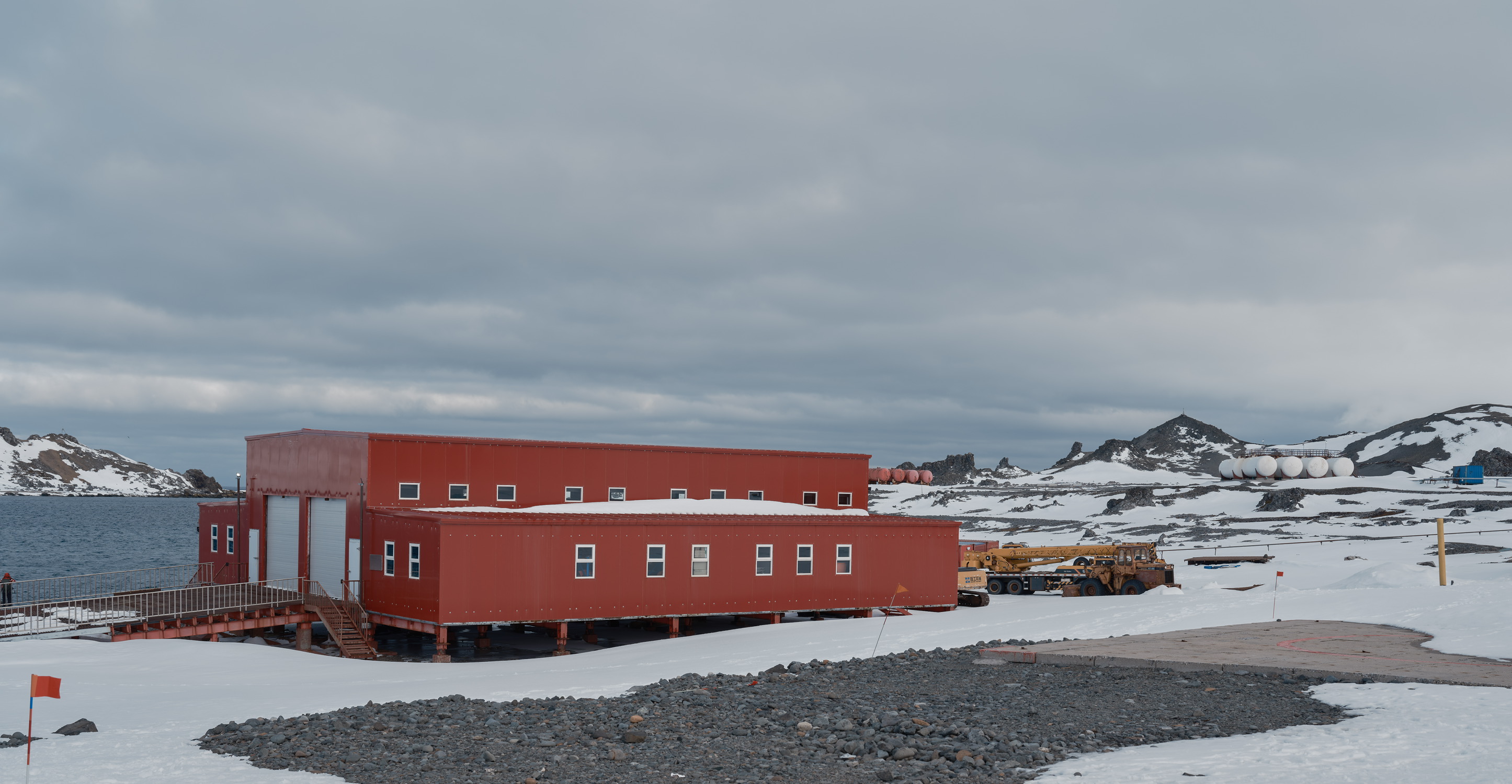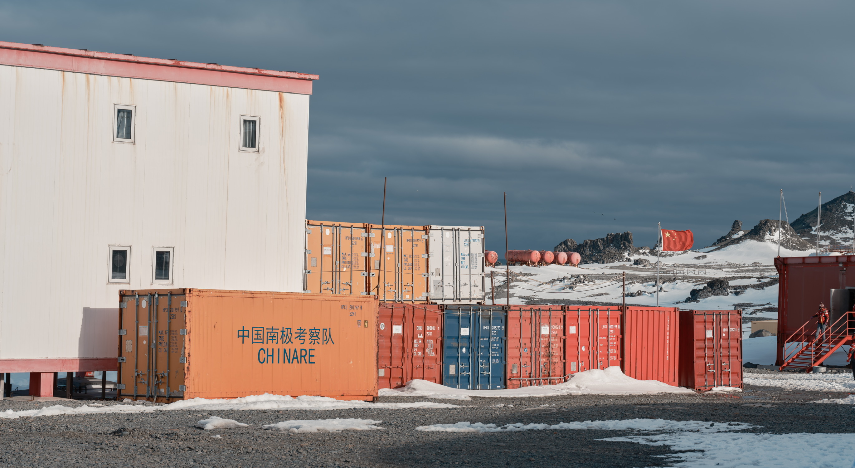 有人说这是“大地调色盘”,显然很成问题。这是人类活动的证据,并非自然形成之物。我去的这天很阴沉,航拍后加上调色相当好看,但实际上在观景台用肉眼看尾矿湖的话,会感觉湖上飘着一层厚厚的像油膏一样泛白的物质,怎么形容呢,就像是一锅炖肉放凉了之后表面上漂浮着一层又厚又粘稠的油脂,很倒胃口,不敢想象谁要是不小心掉进这湖里会怎么样。如果恐怖小说中的古神克苏鲁苏醒,我想大概就是在这样一种又厚又粘又妖异的物质中缓缓升出水面的吧。