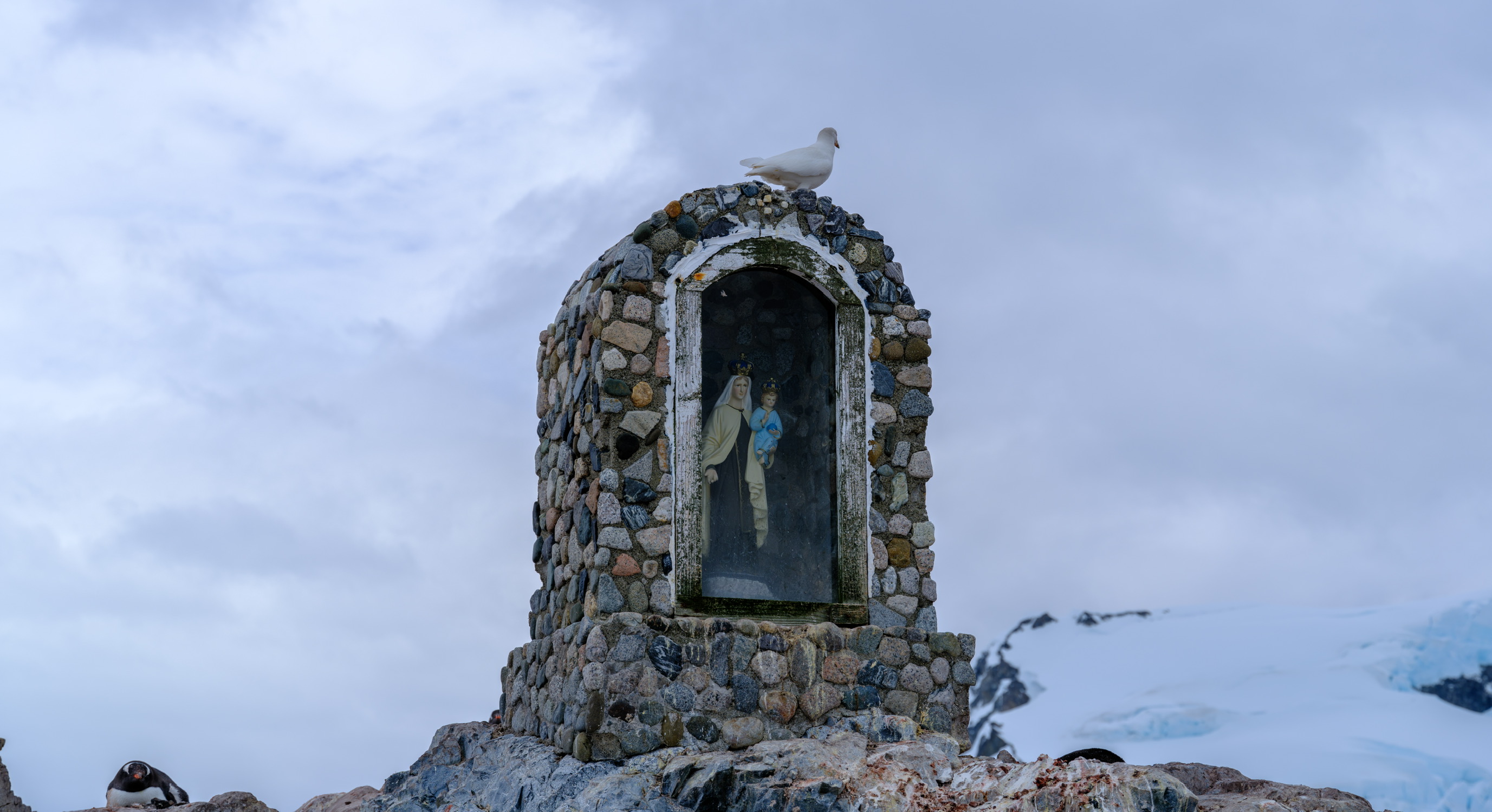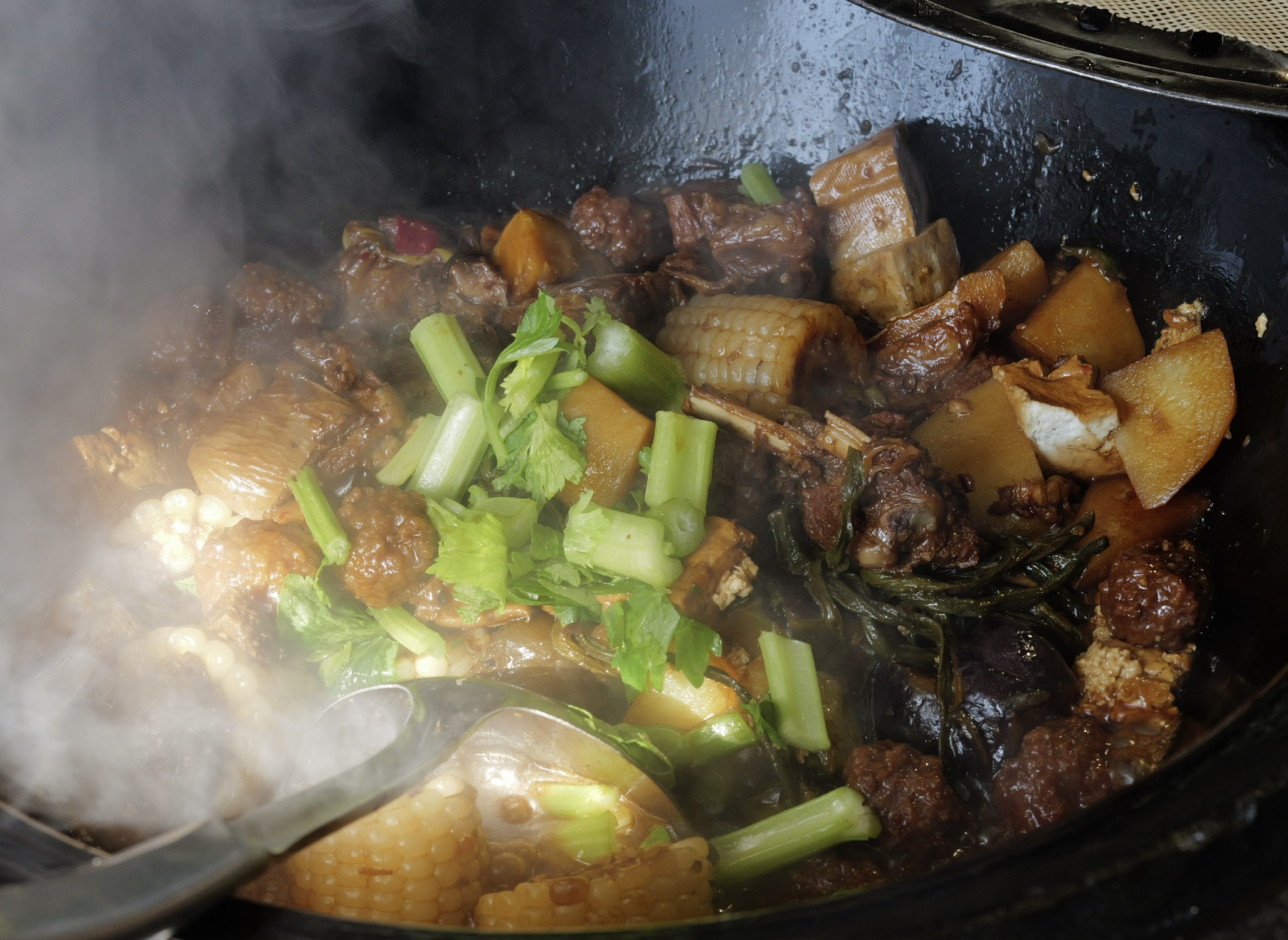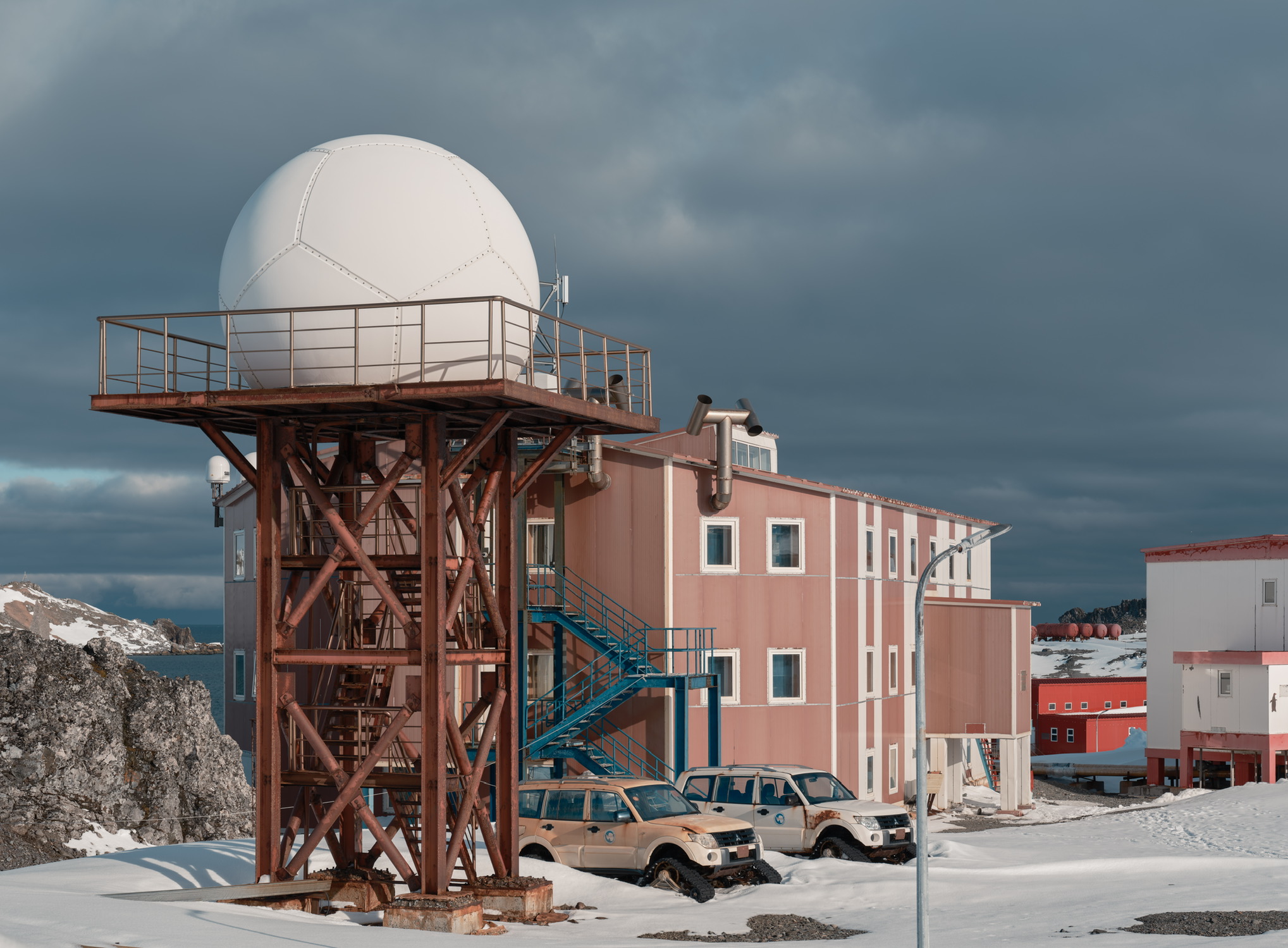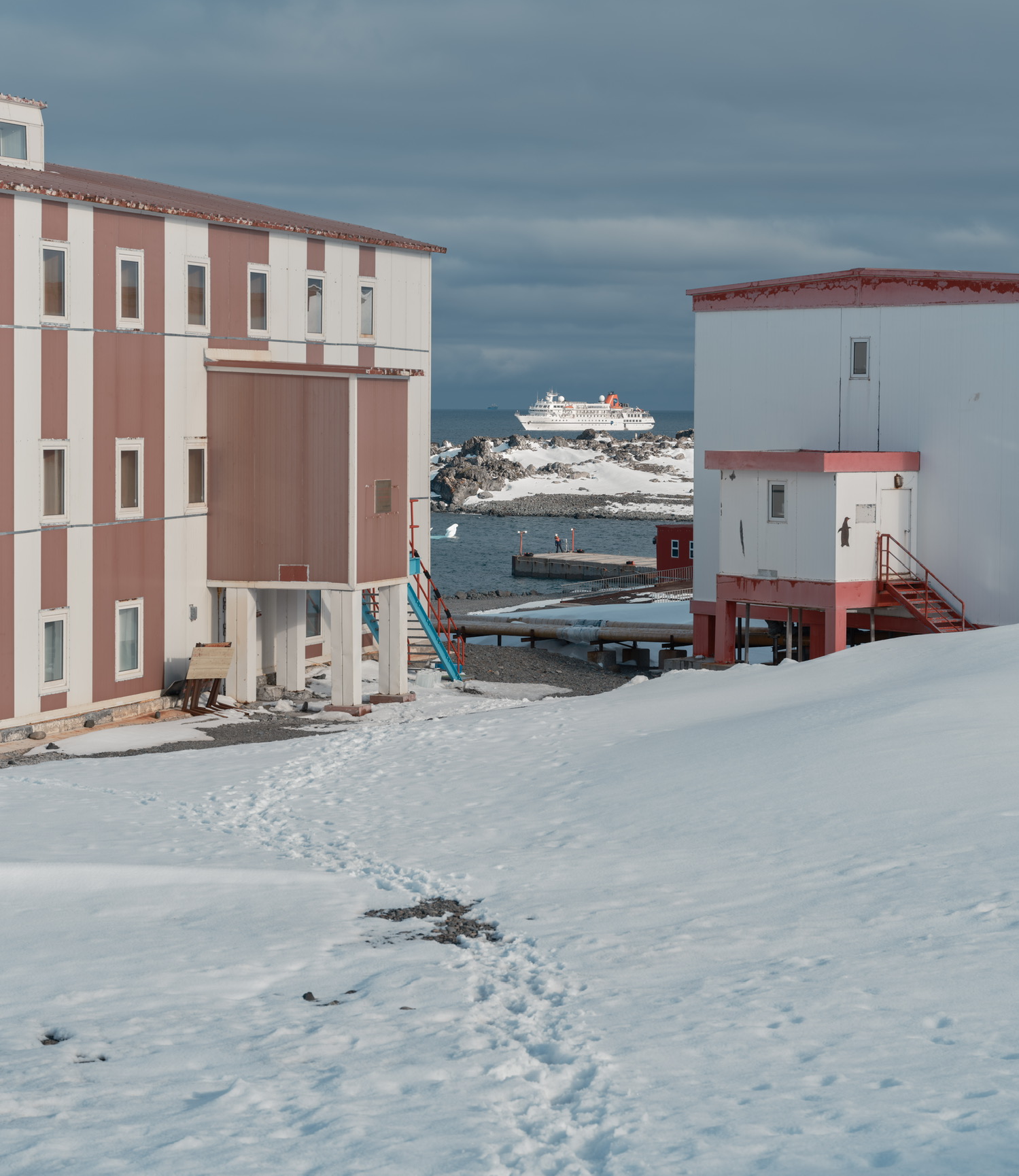 有人说这是“大地调色盘”,显然很成问题。这是人类活动的证据,并非自然形成之物。我去的这天很阴沉,航拍后加上调色相当好看,但实际上在观景台用肉眼看尾矿湖的话,会感觉湖上飘着一层厚厚的像油膏一样泛白的物质,怎么形容呢,就像是一锅炖肉放凉了之后表面上漂浮着一层又厚又粘稠的油脂,很倒胃口,不敢想象谁要是不小心掉进这湖里会怎么样。如果恐怖小说中的古神克苏鲁苏醒,我想大概就是在这样一种又厚又粘又妖异的物质中缓缓升出水面的吧。