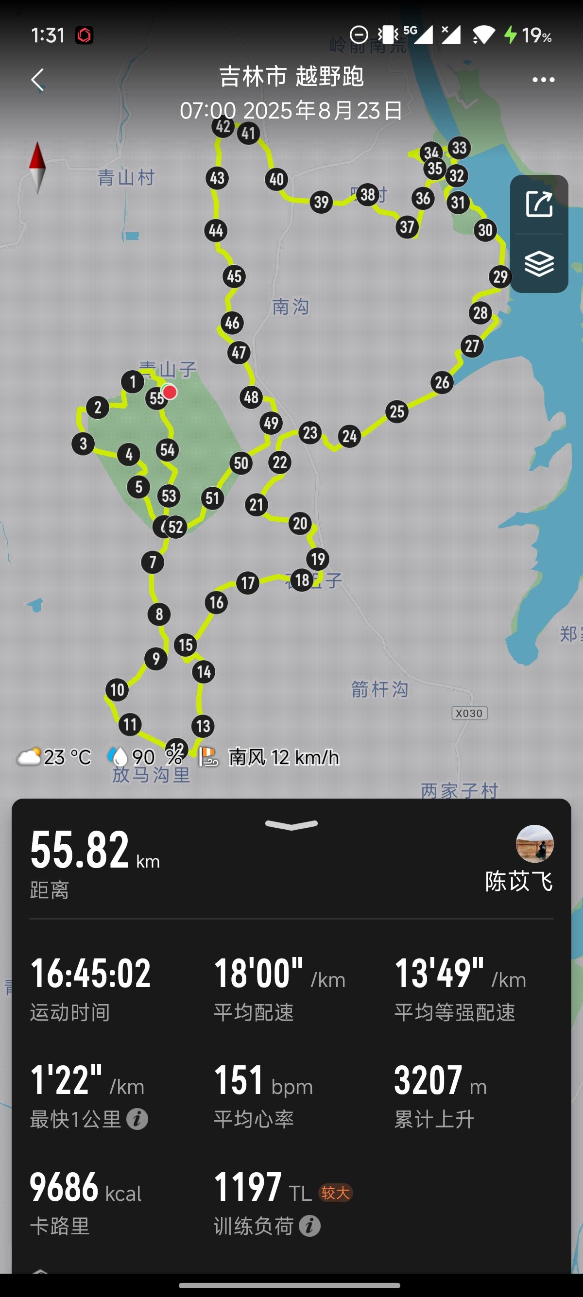 虽然时间不多了,我也不确定自己能不能在规定时间前完赛,但我决定先跑再说。下坡的路真的很艰难,远比上坡更考验我本就消耗无几的下肢力量。但是随着离终点越来越近,我发现自己的步频越来越高,甚至到最后感觉不到太多的疼痛,只顾狂奔。最终我在关门前15分钟冲线,很久以来第一次真正为自己感觉到骄傲。