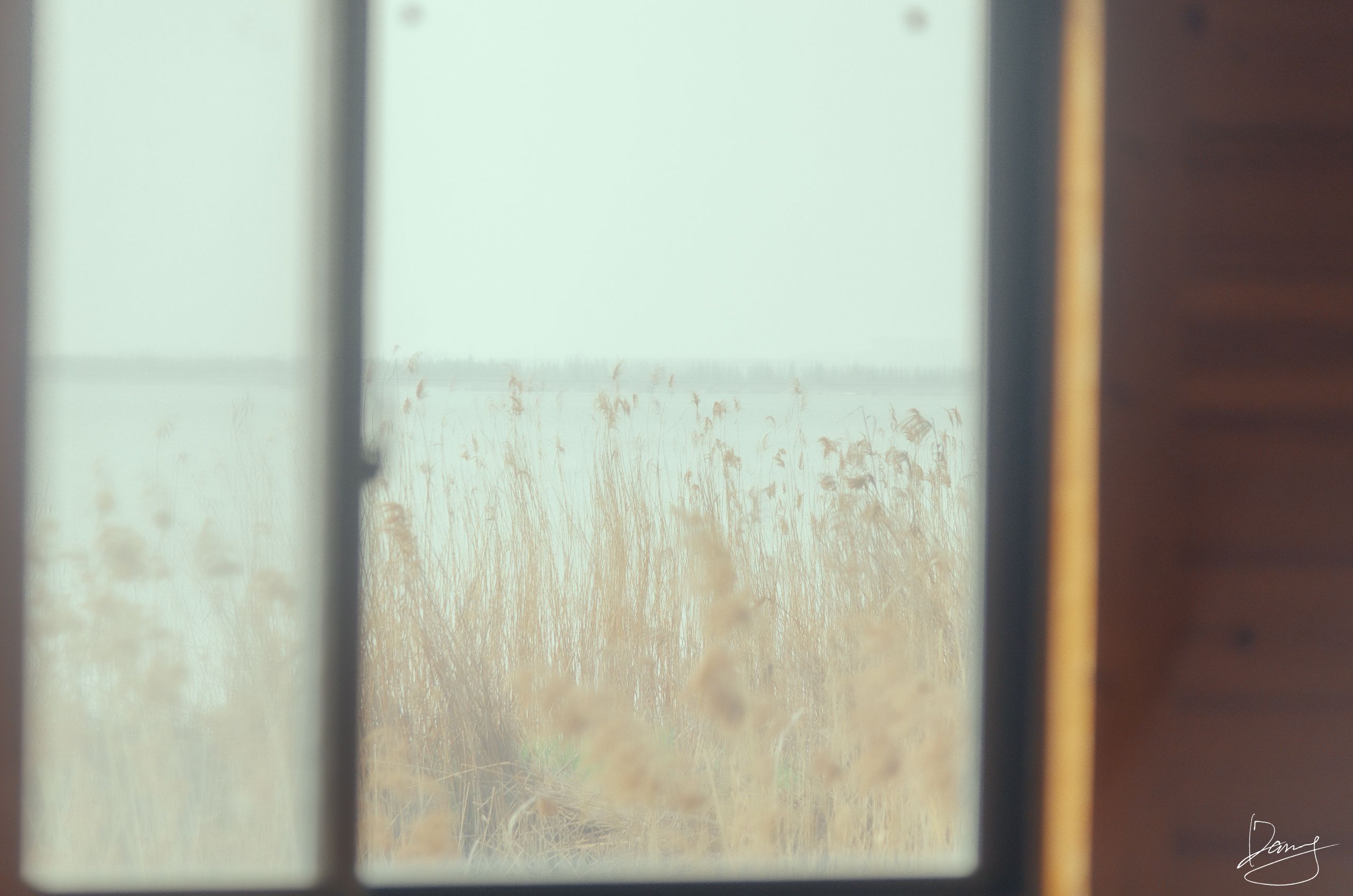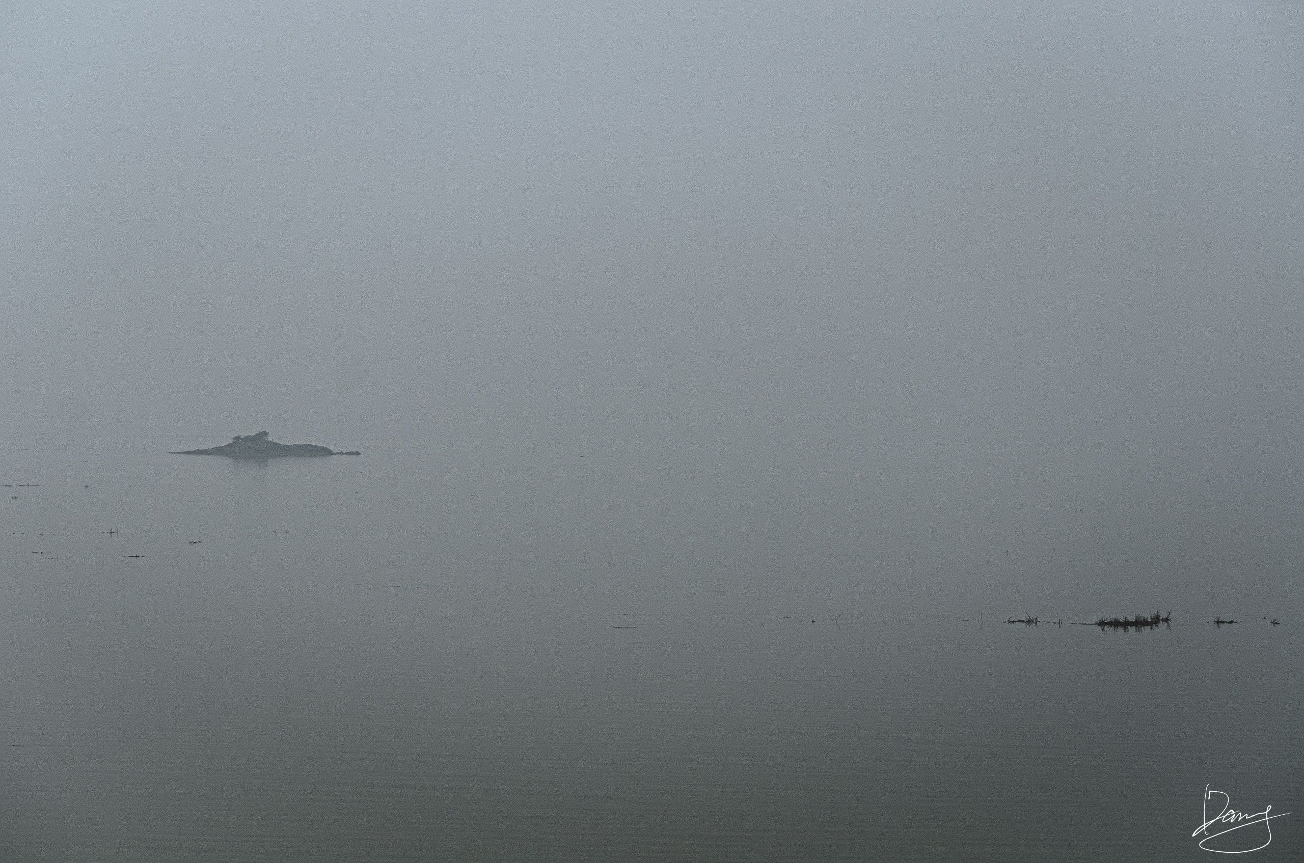 在县城有个好处是离郊野近,背上相机蹬自行车出去就能看到秋日大雾弥漫的湖水