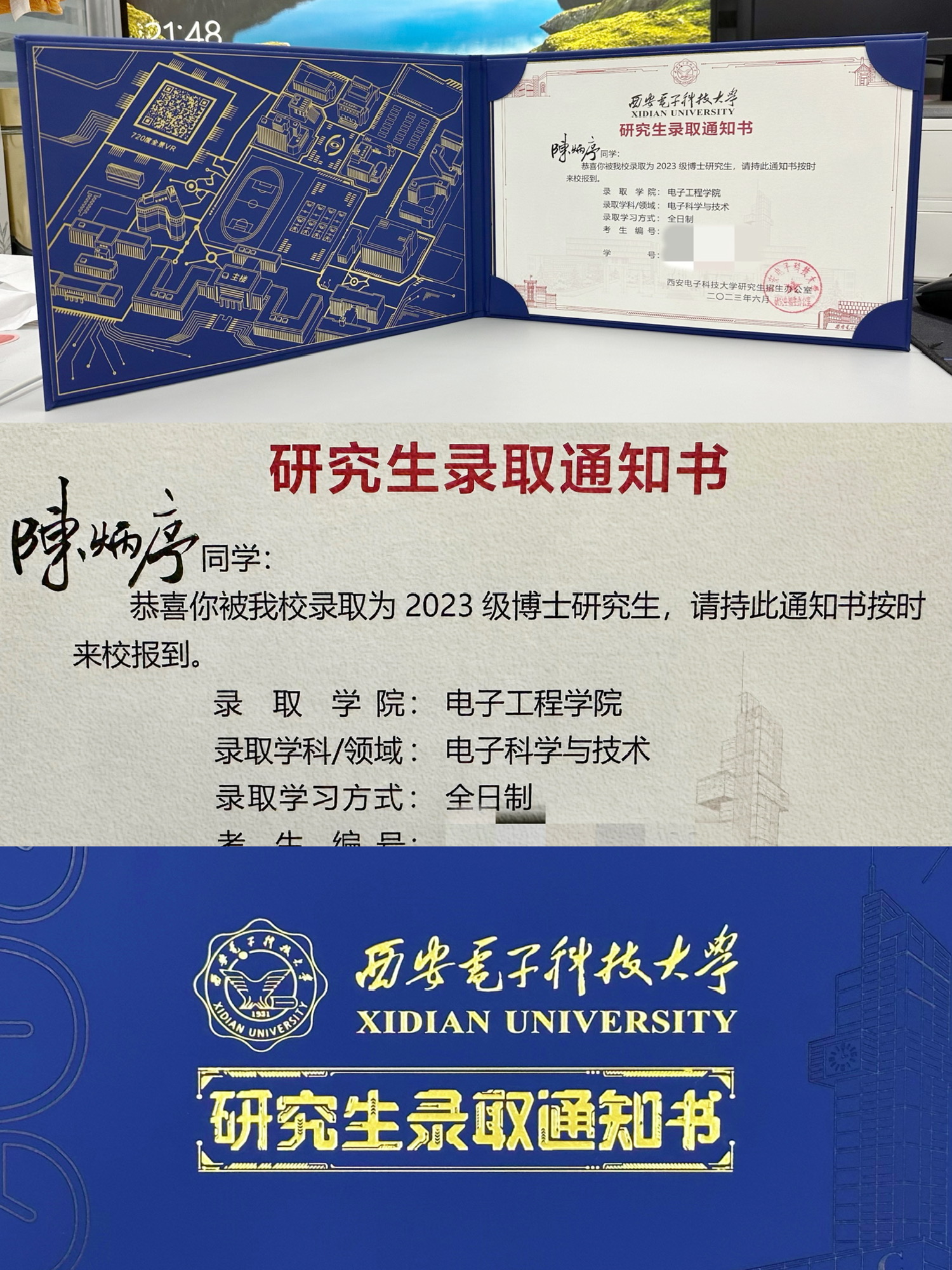u1s1,西电的录取通知书我很满意;