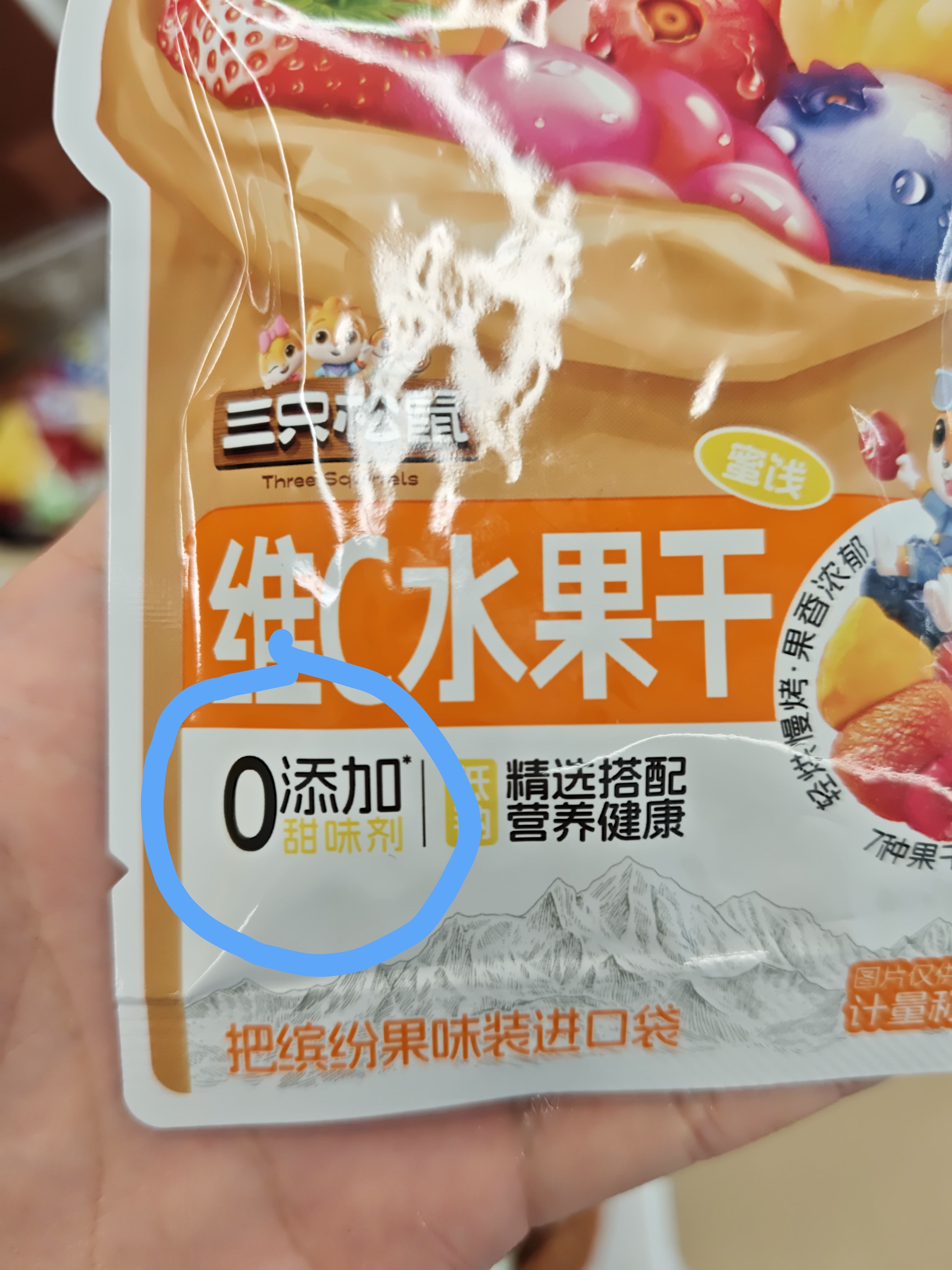 看到零食架上新上了个三只松鼠的水果干,名字叫维 C 水果干,雷达就开始响了,维C这两个字完全就是为了引流的,正常水果哪需要标注自己有维C