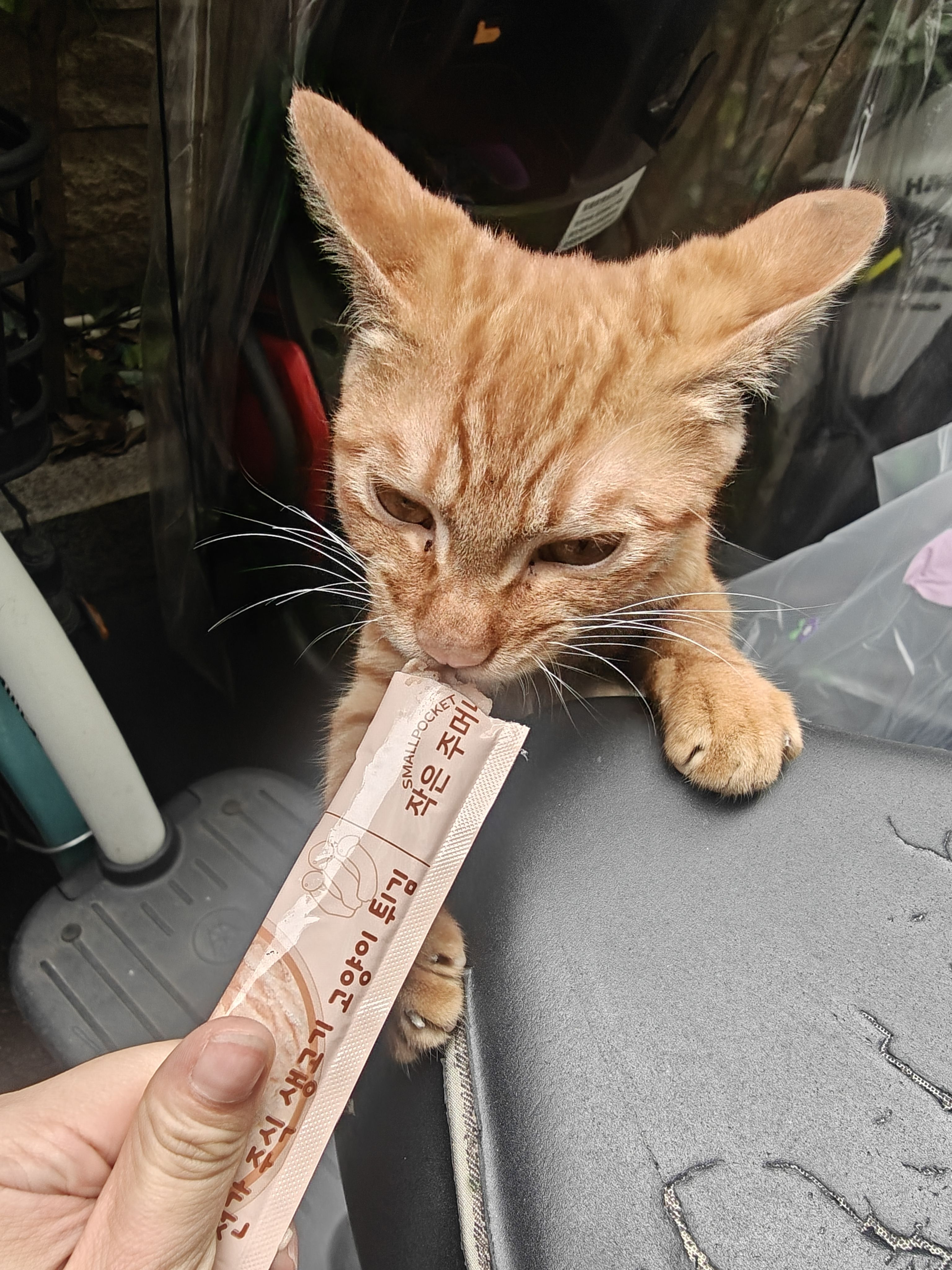 终于喂到楼下的小咪啦!