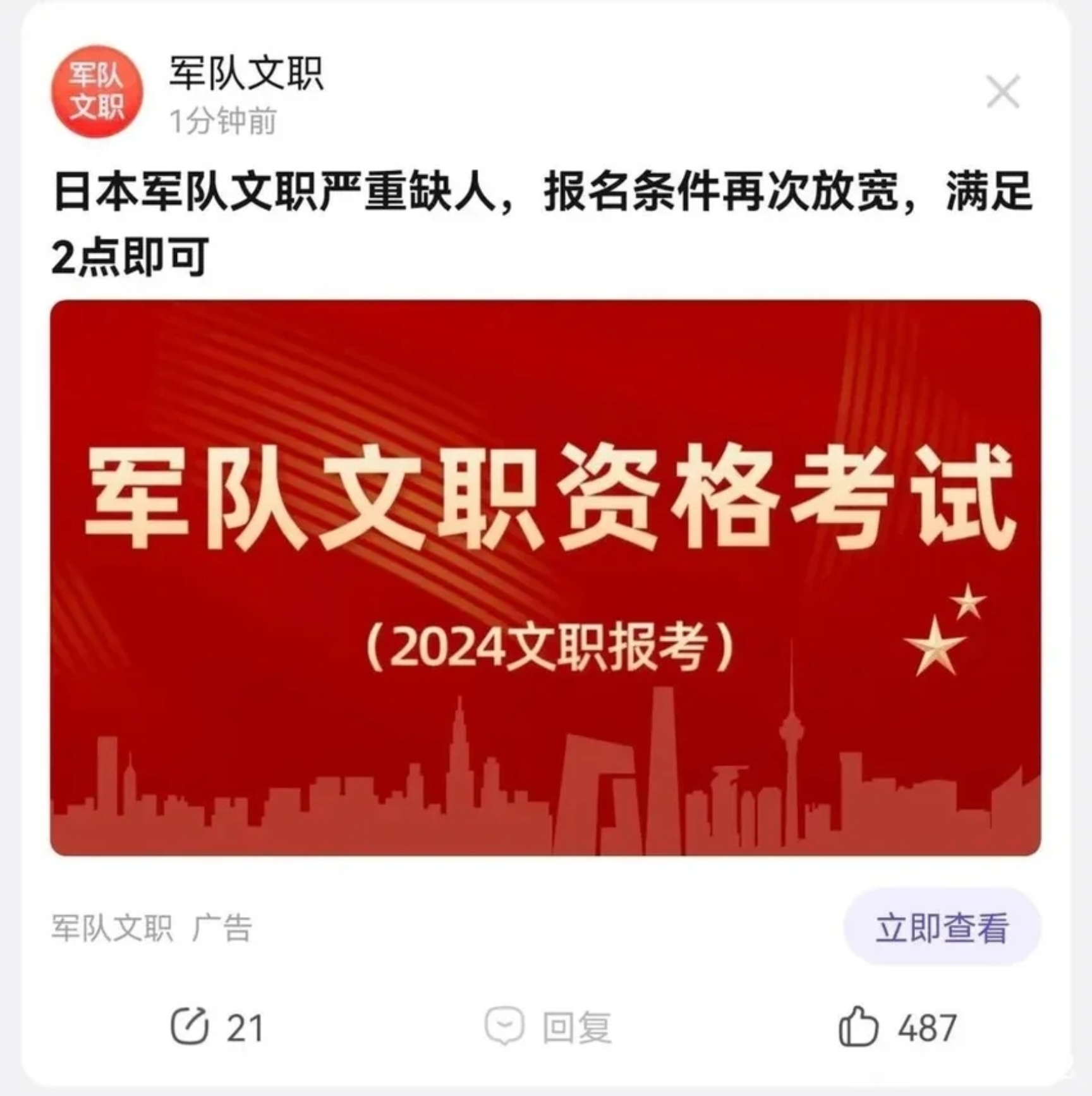 自卫队招人说是