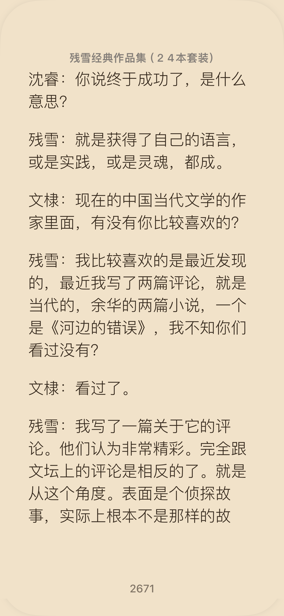 之前想看这本书,让人代找了一个扫描版,但是太灰,影响阅读;在京东上找到了一本二手的,品相极差,前十几二十页有一个洞穿,看到快结束时发现这是广东一个国际学校的馆藏书,应该是后来清理做销毁处理吧(那个洞)。记得花了两周,就把这本看完了,两周时间,着实看得快乐,也有些痛苦。后来搬家太麻烦,就把这本书卖了。现在仍然想看,下载了一个更白的电子版本,准备再看一遍,如果能有中文版,一次性看到完,那真是绝佳的阅读体验。