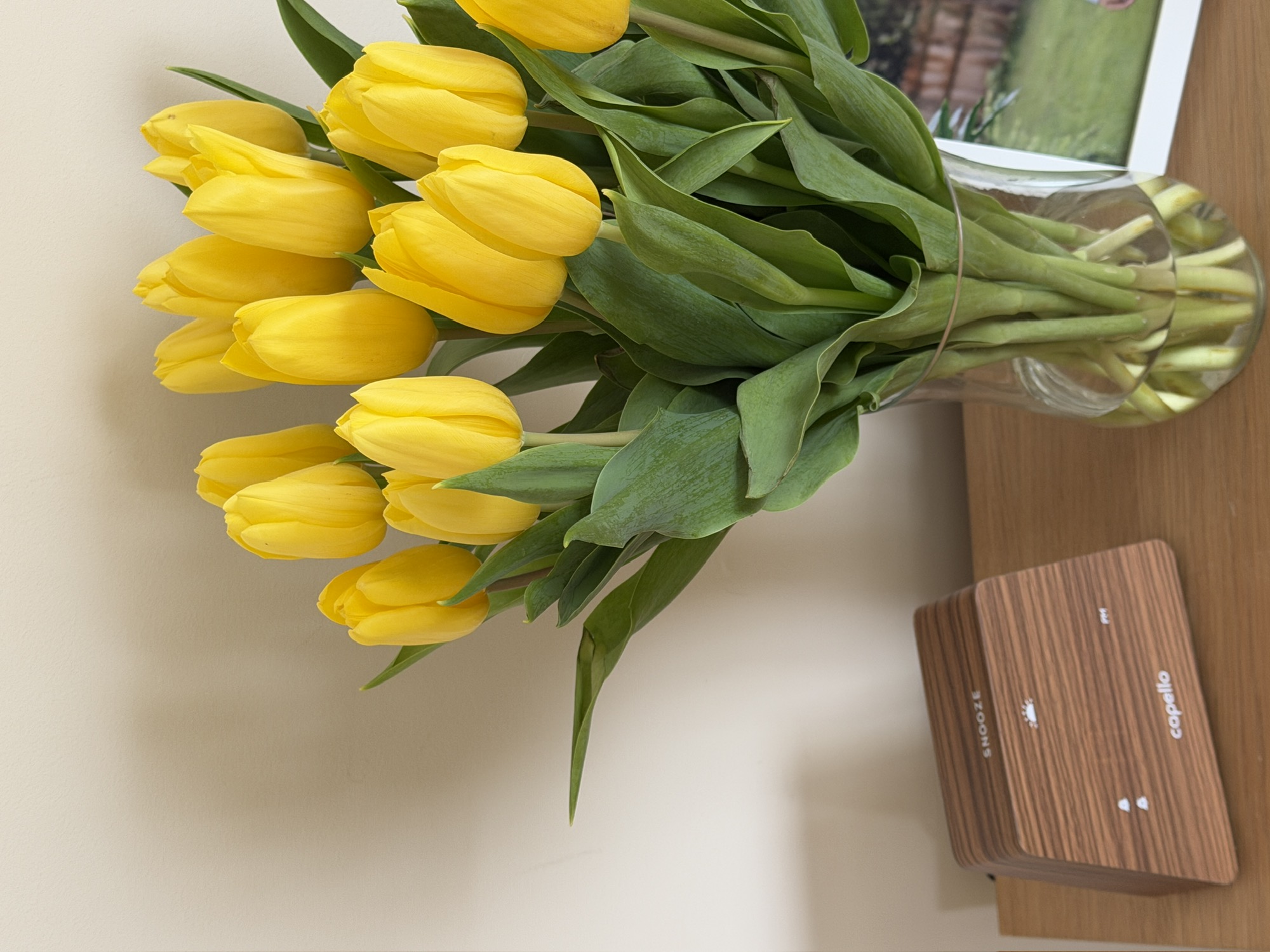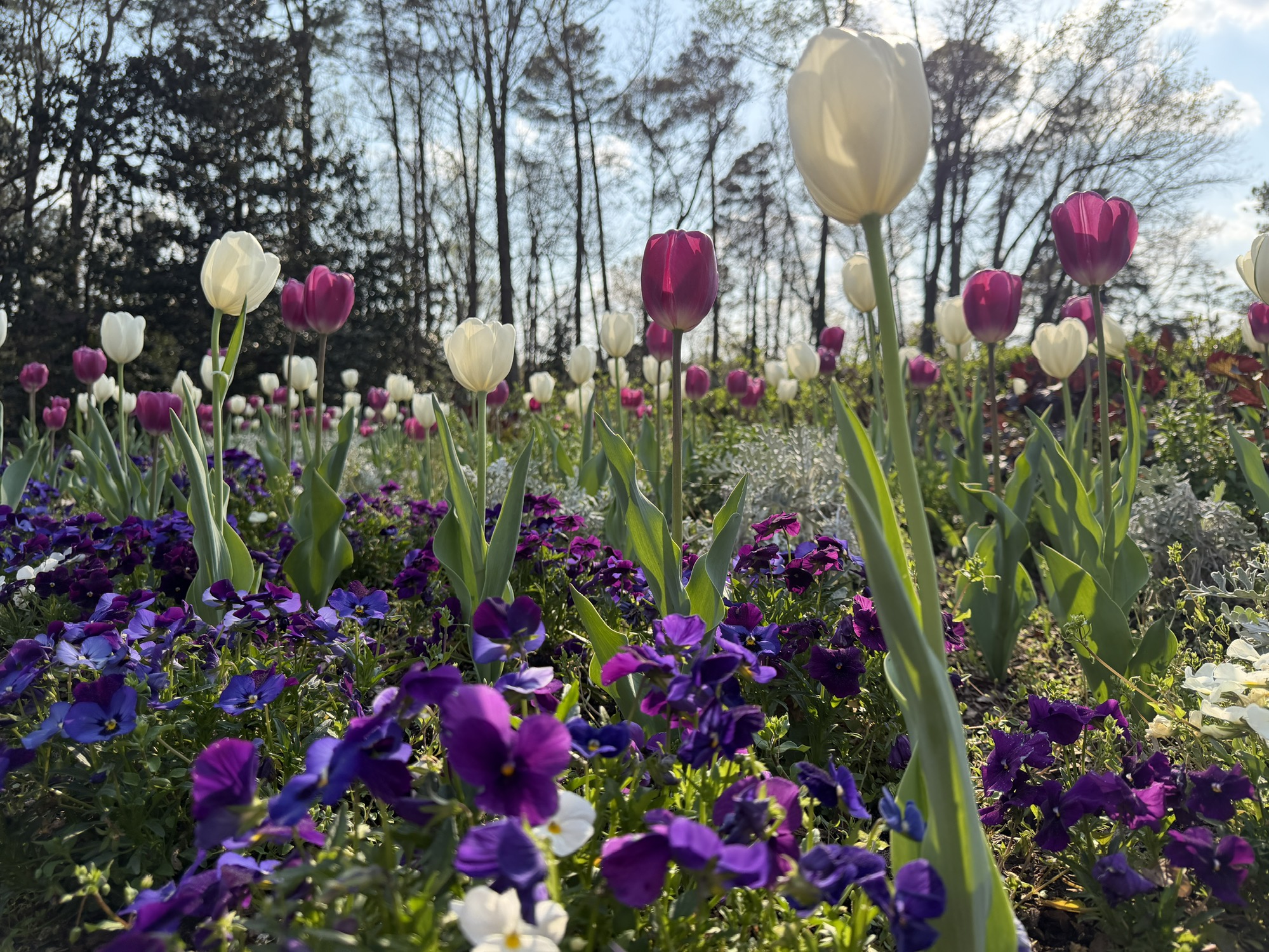今年学会欣赏郁金香了。私立学校搞园林真的是不带心疼的。可惜自己的一捧明黄色郁金香养得不好,没等盛开呢就叶子枯掉了,明明非常努力地每天换水切根了!