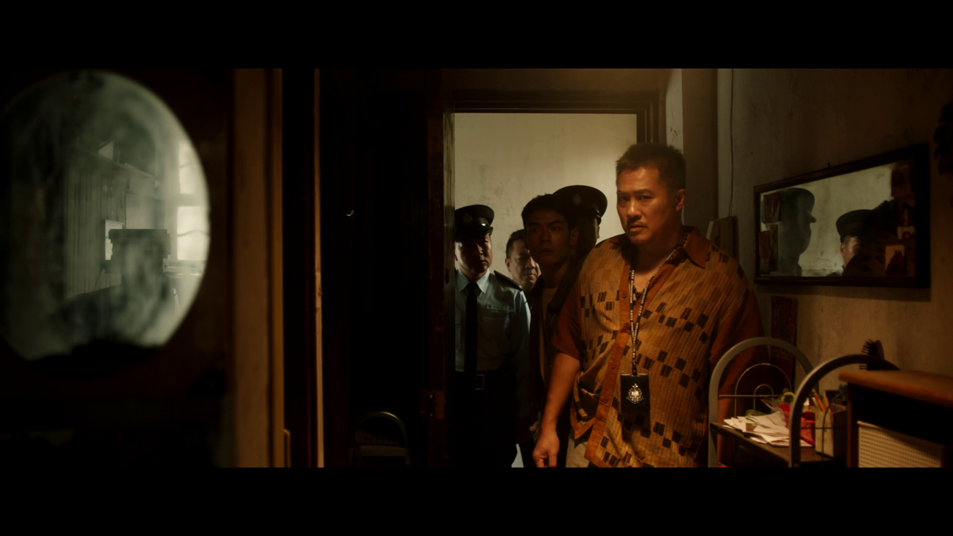 与兄长之间,二人有一番兄弟间独有的感情在,无论是玩手游卡关二人交流时的自然,还是在监狱面谈时,兄长说完上句就能接下句的默契;以及张显宗犯案后,最后还是放弃叫兄长去命案现场这一事实,体现出二人还是有着一番兄弟之情。也因此在片尾兄长离去时,张显宗情感崩溃地狂敲中间那层玻璃墙,这也是全片中他唯一一次不理性的情感爆发。