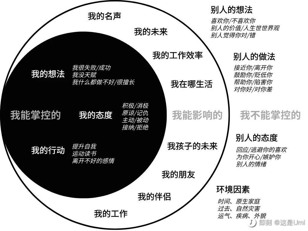 美国学者史蒂芬·柯维有一个“人生控制图”概念,是指把个人可以控制的事情圈起来。