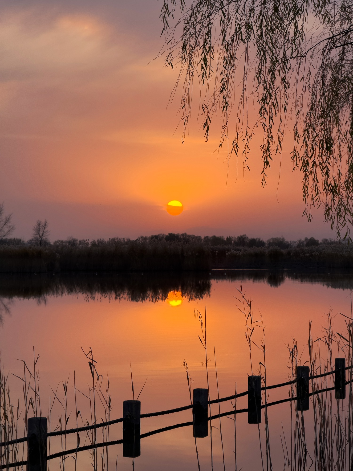 周末的野鸭湖日落