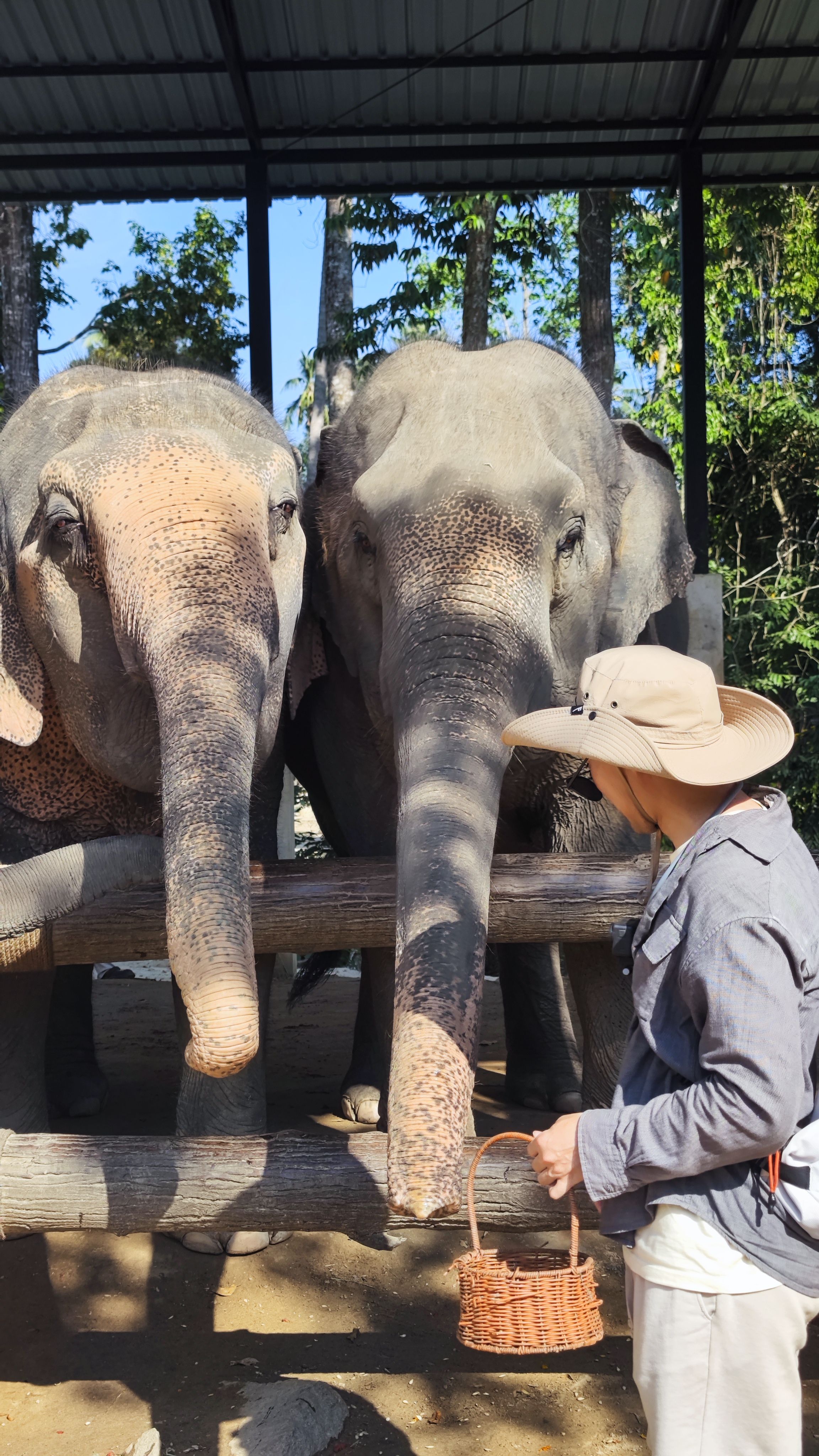 前几天的苏梅岛野生大象保护区,非常近距离了,两篮子香蕉随便喂随便摸随便合影,elephant shit全是粗纤维🌝。后面想起来有个问题没问,为啥7头全是母象。最近同事过来有意思多了,在普吉待了几天,他昨天回深,我过两天,行李在苏梅岛还得去拿。
