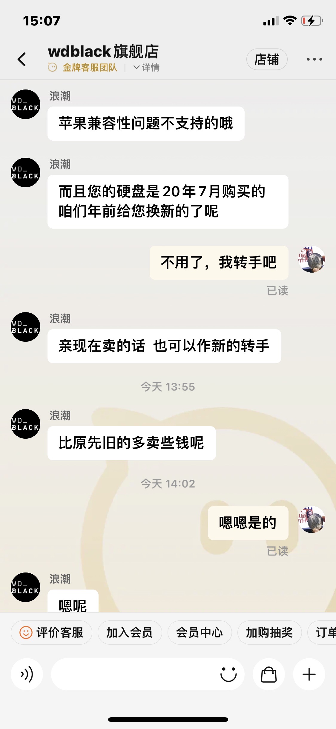 需要和了解详情直接联系我,也可以去淘宝-wdblack旗舰店直接咨询售后,官方店铺工号浪潮,对我的产品质保问题非常清楚