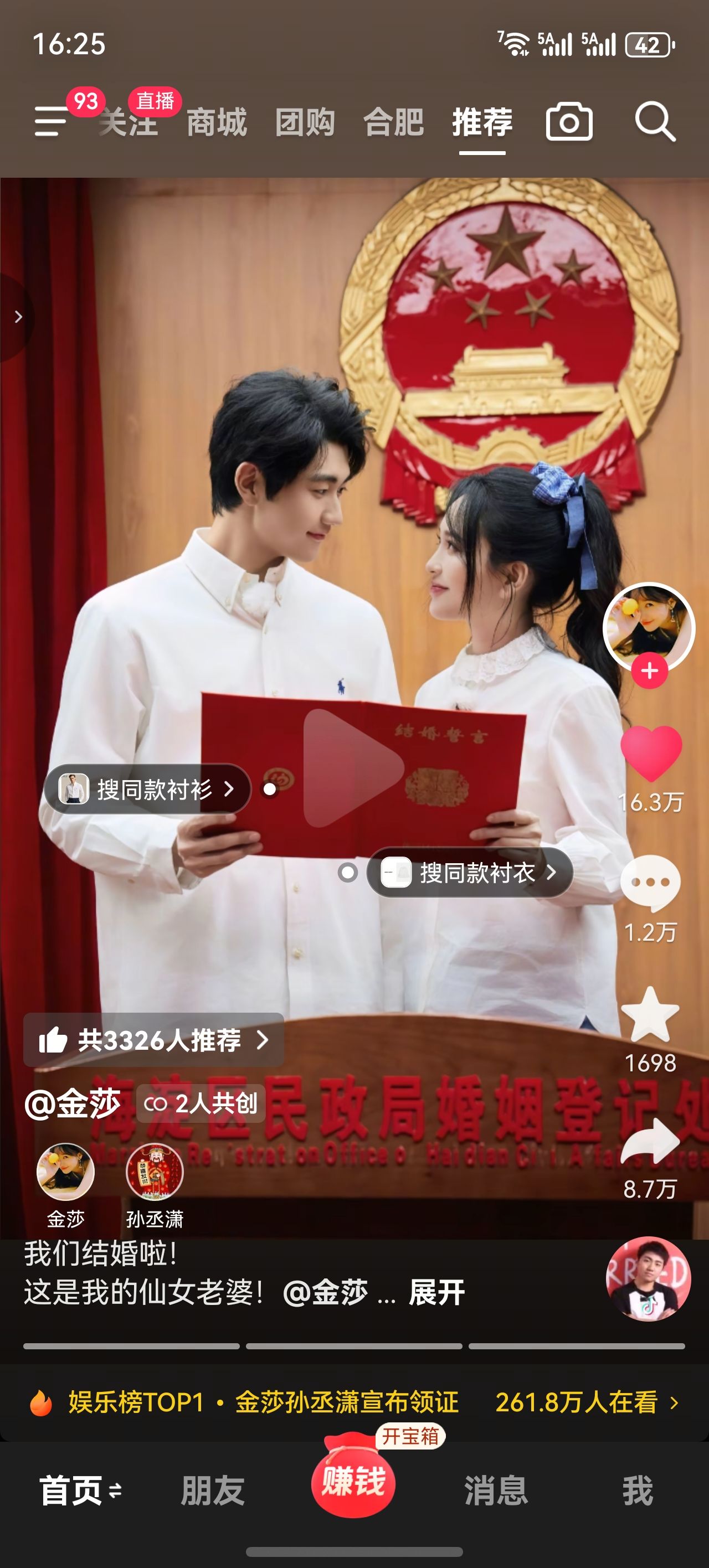 哇哇哇金沙孙臣潇也领证了