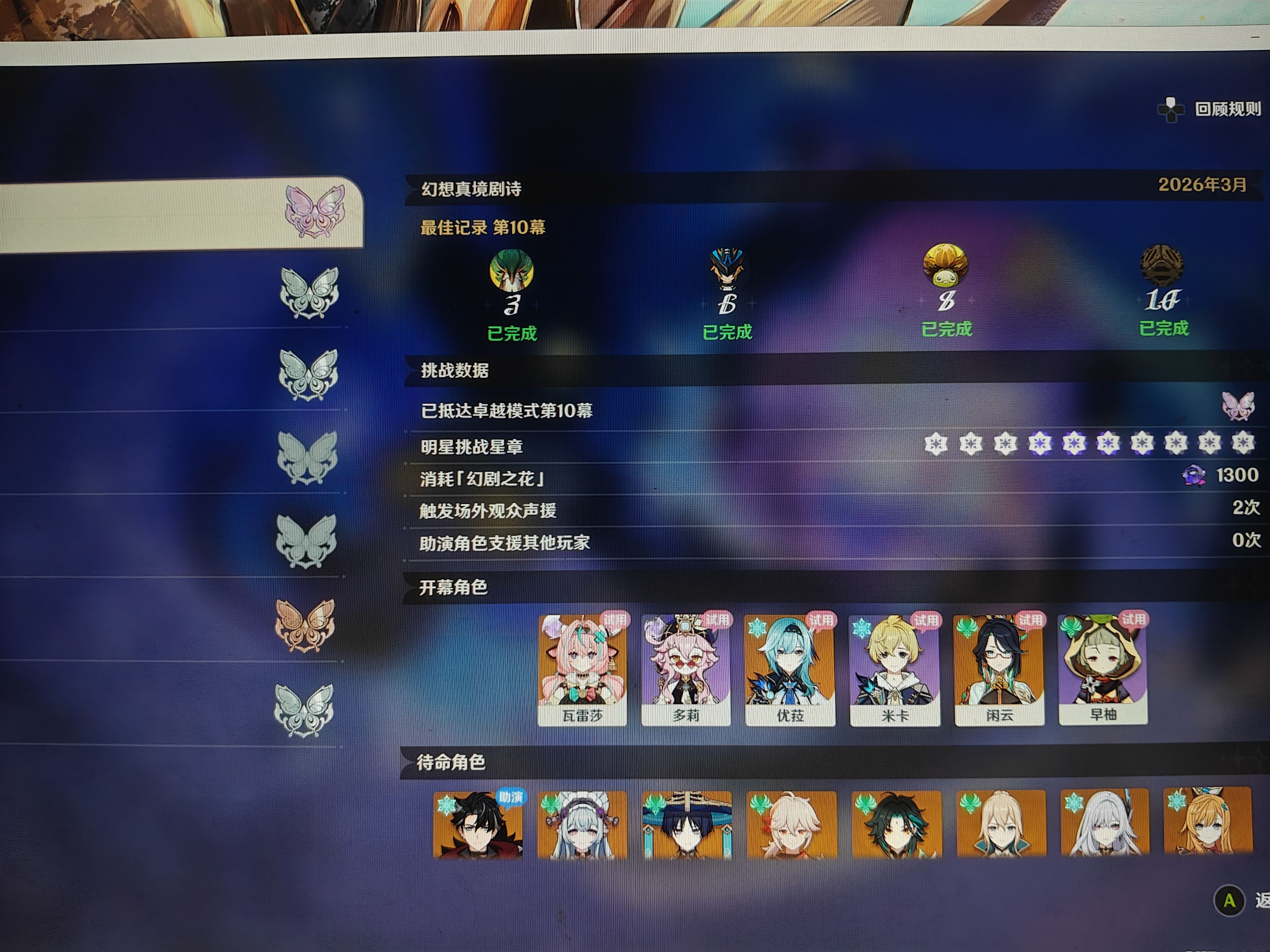 帮小白打完了这期诗剧,卓越模式满花﹉月瑜他不够角色打不了了。感觉r大佬的六命莱殴斯利!