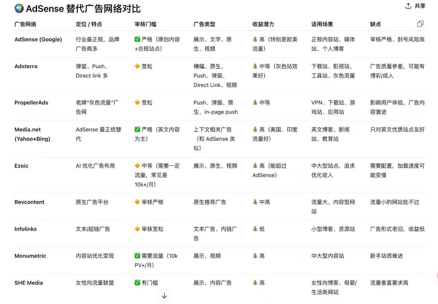 基础服务:收录 Google search-console、管理 Google analytics/Bing webmasters、广告 Google adsense、分析 Google PageSpeed、广告 Adsterra、广告 Ezoic、广告 monetag