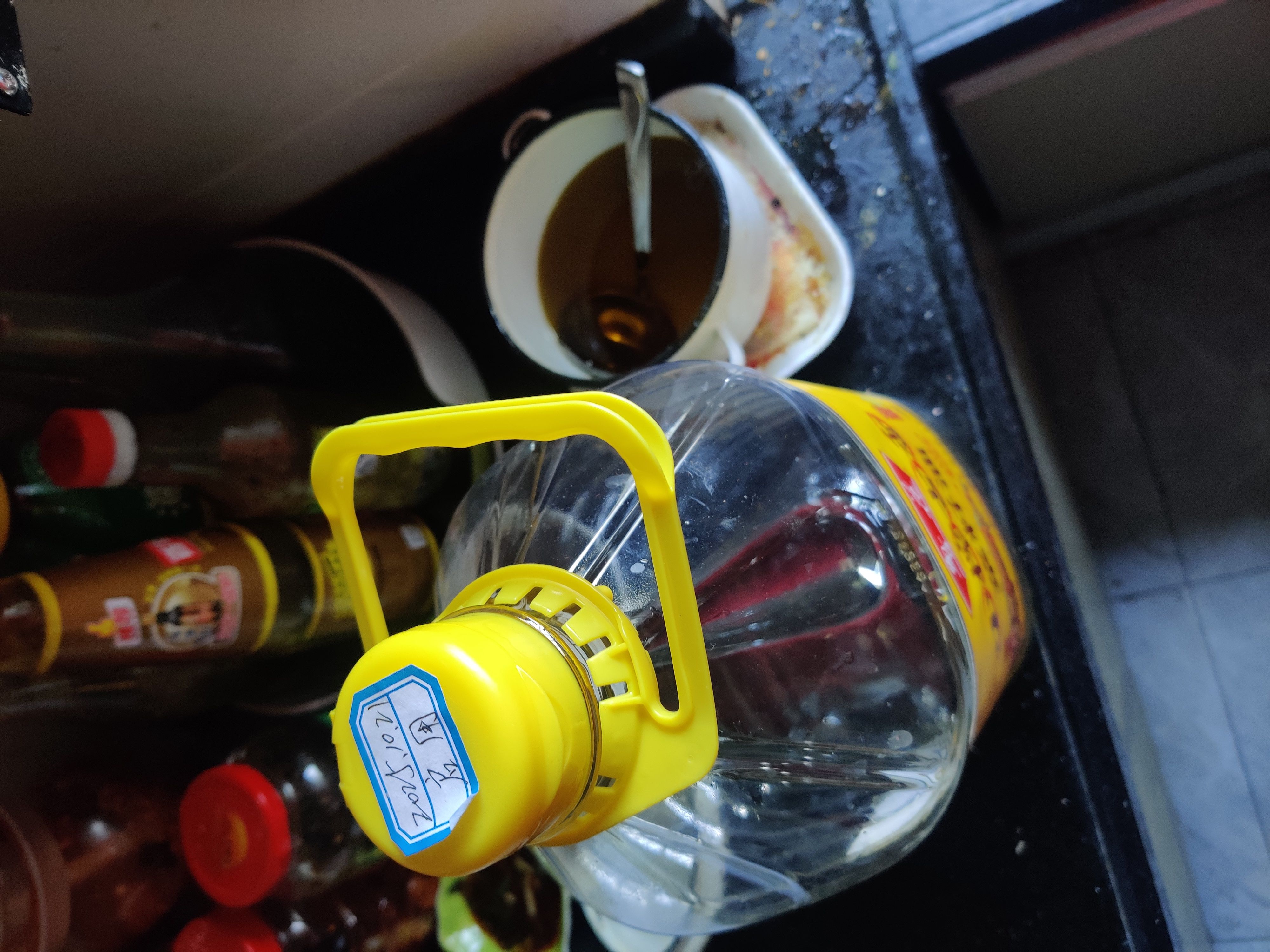 10.2号万小姐在这个五升的鲁花花生油上做了记录,今天还剩下半壶,预计还可以用一周。