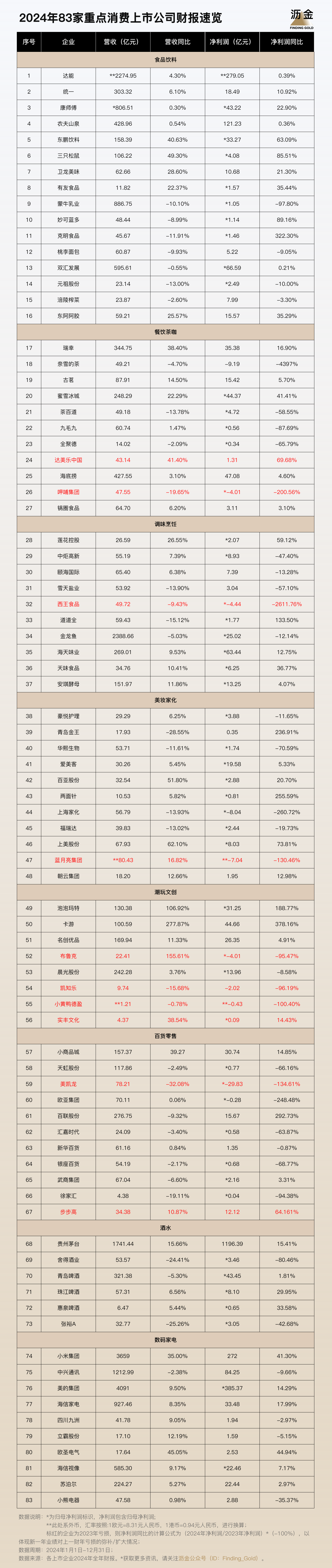 我们复盘分析了83家重点消费上市公司去年的业绩 发现消费分级正在加速 增收不增利成为共识