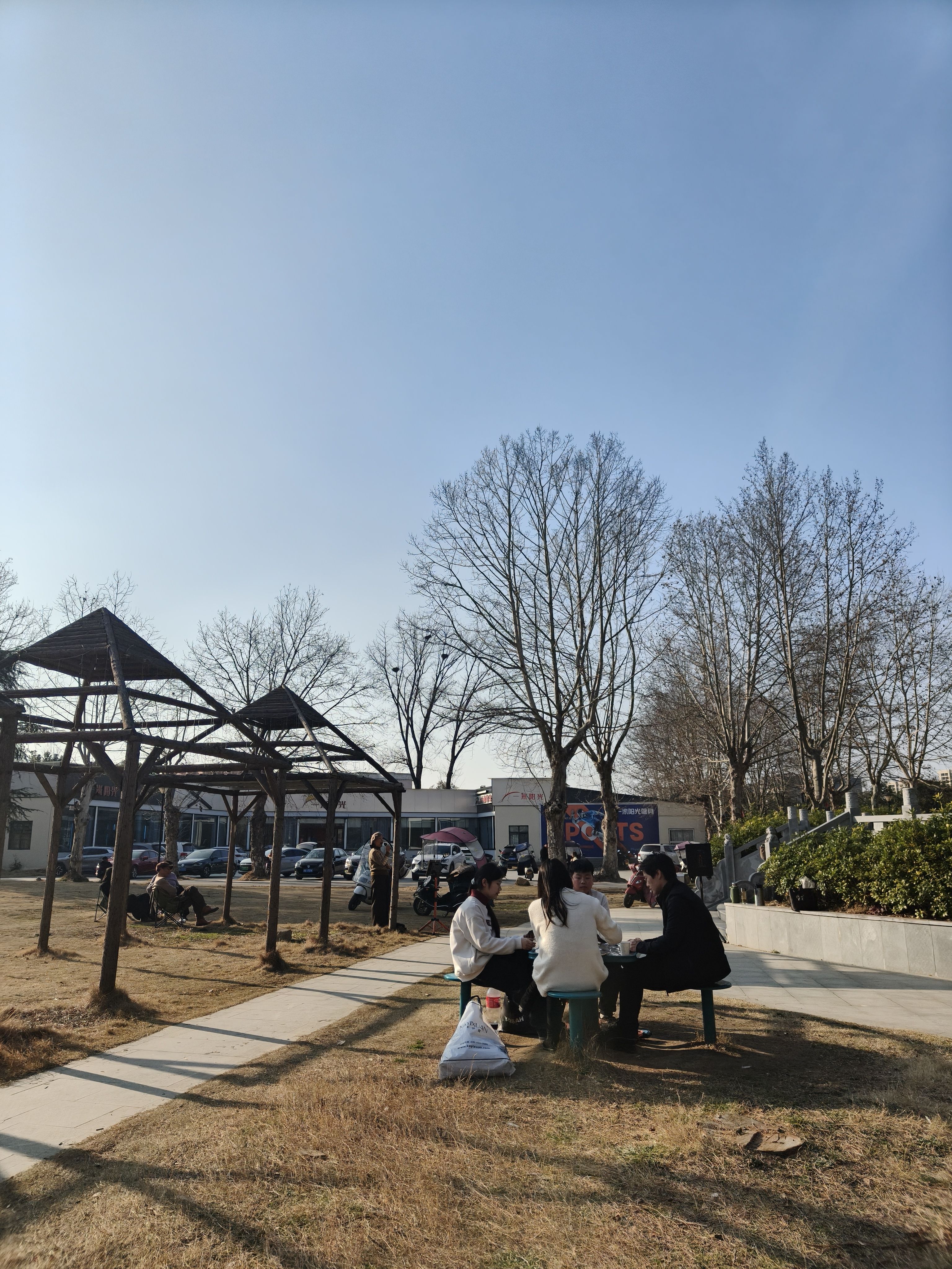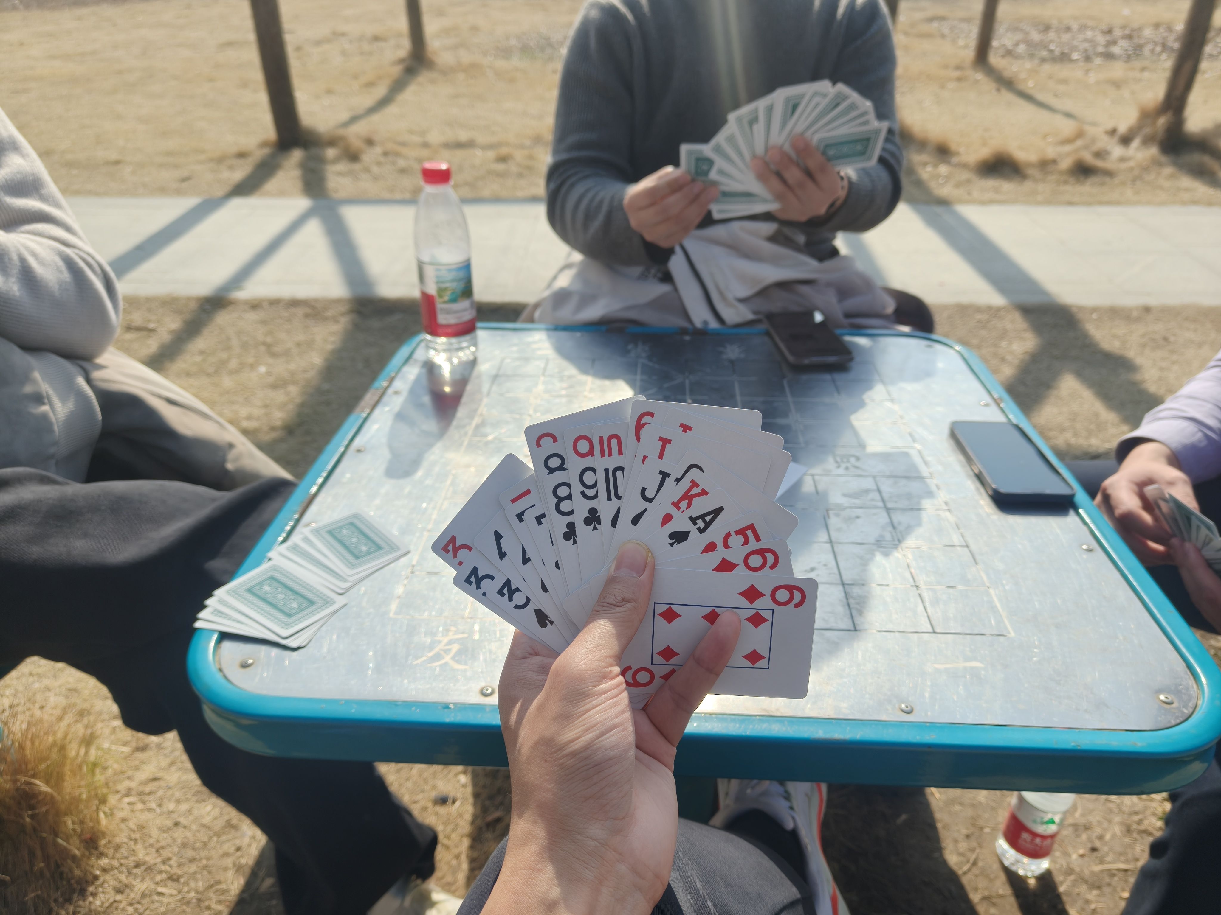 慵懒的下午,和同学在学校旁边的公园打掼蛋,歌手在旁边唱着,阳光洒在身上脸上。