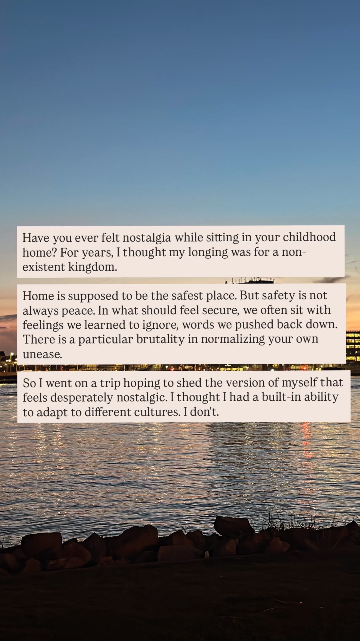一些random notes,关于回家之后依然会有的“思乡情”,关于很多年积累的文化冲击,正反交融造成的一些不合时宜和无处安放的感受。