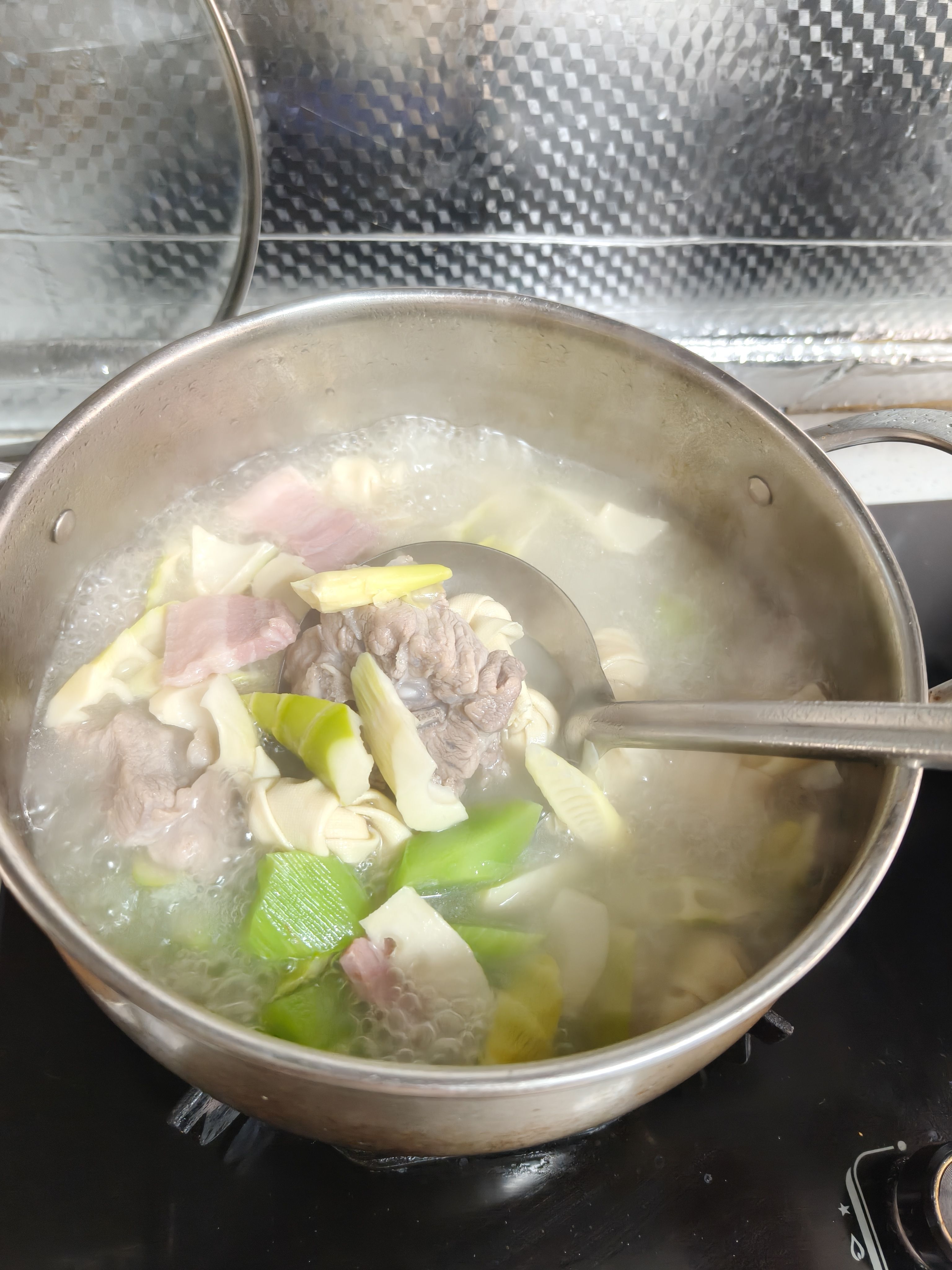 做了加料版的腌笃鲜,到最后也没舍得往汤里面放河虾,太贵了做了油爆河虾给孩子吃😭