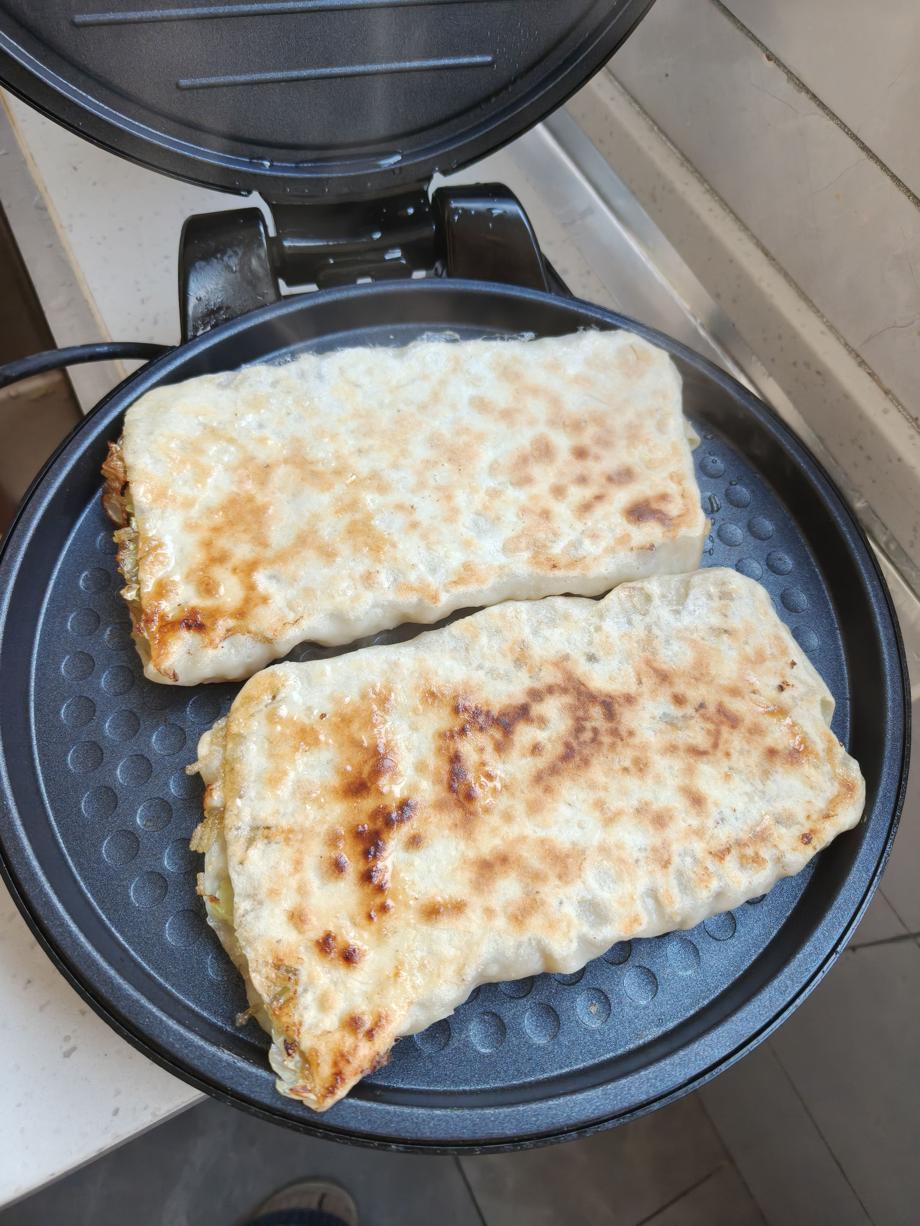 在我妈的远程指导下做了白菜咸馍,结果三个人就我一个吃的,爽吃两大块!