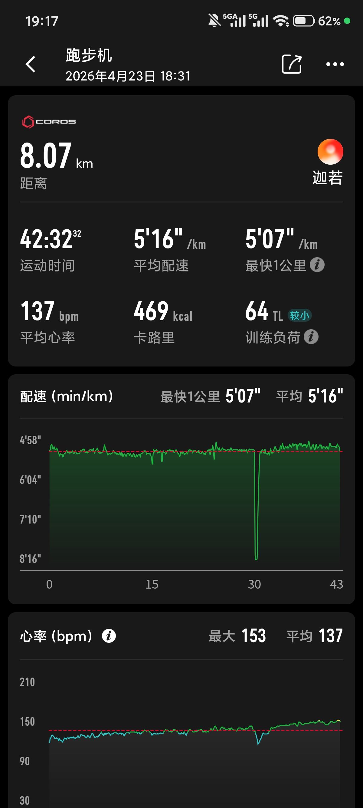 噢 今天跑了,太累了,又慢了