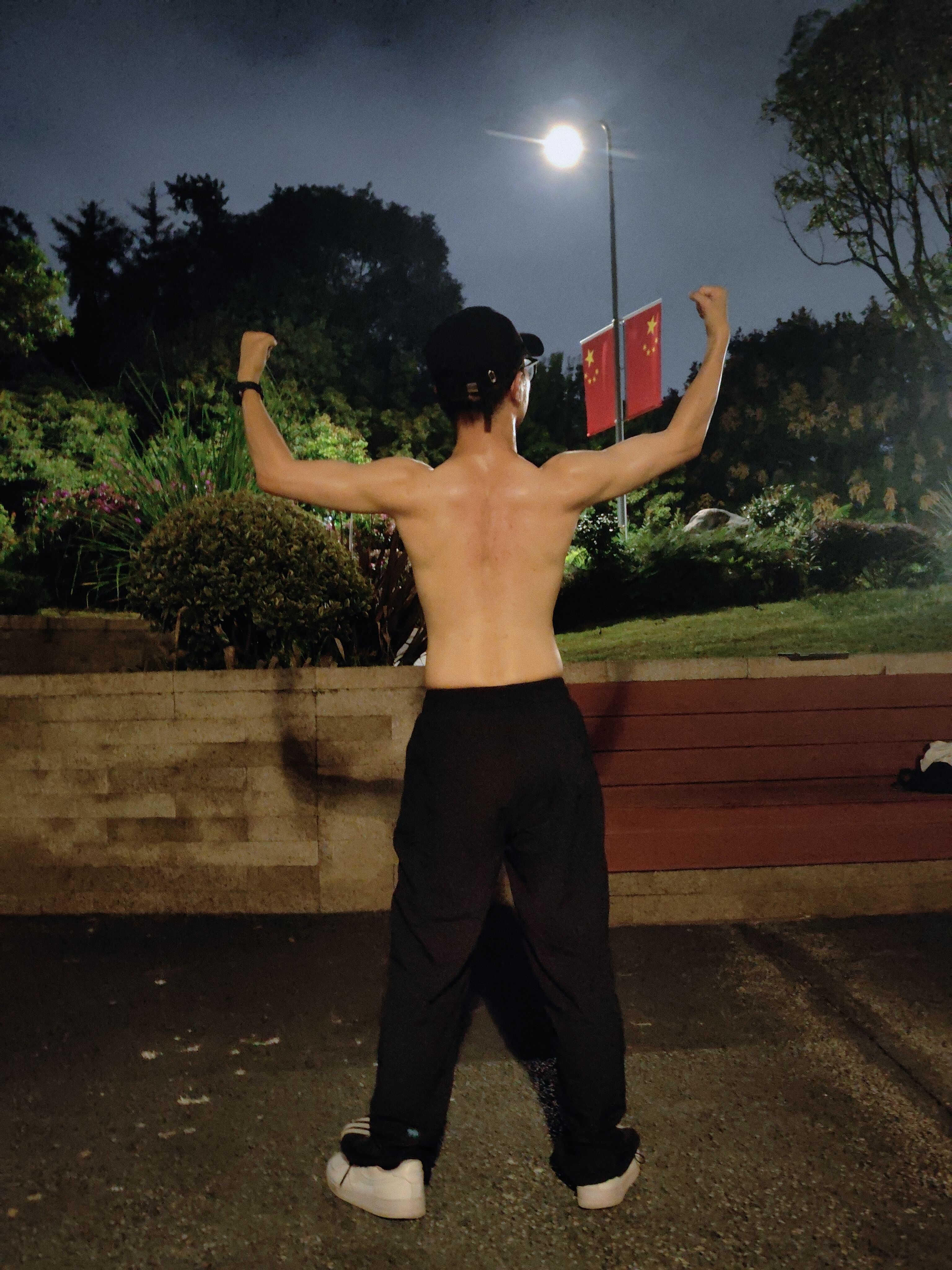 大半夜的还在公园做有氧