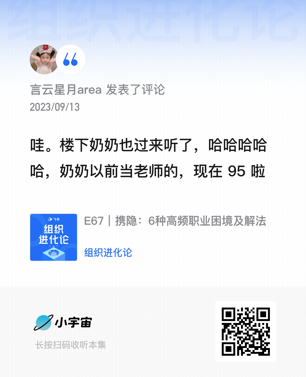 1. 希望是播客资深听众,听过《组织进化论》;