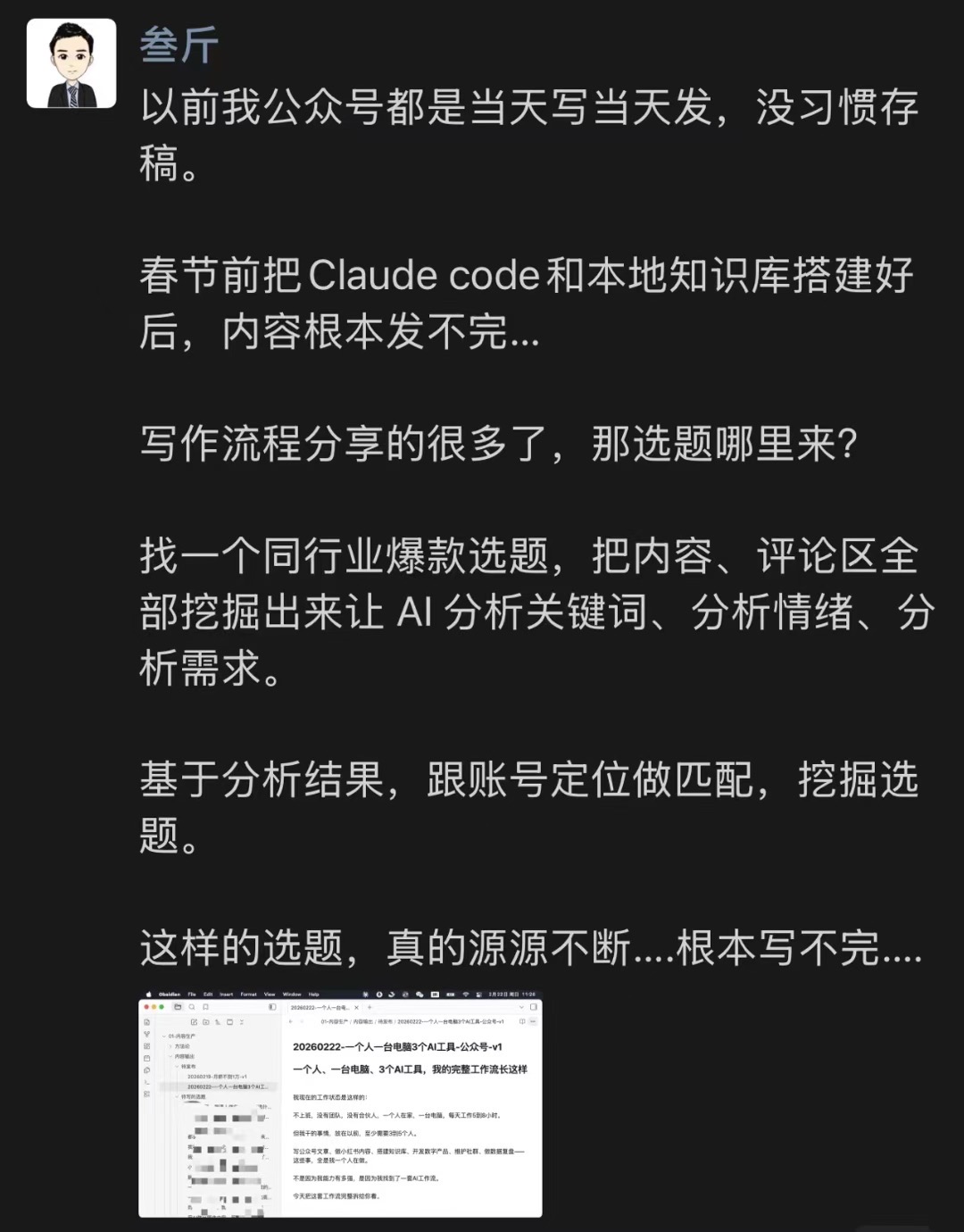 他们知道自己的流程哪个环节最耗时间,知道 AI 能在哪个节点帮他提效,知道省下来的时间该拿去干什么。