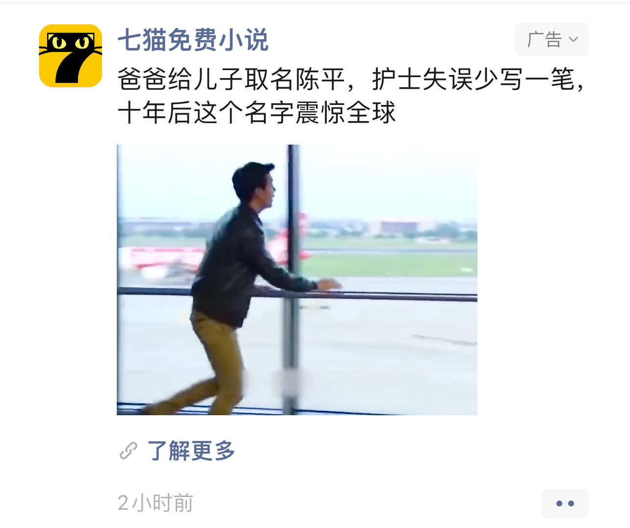 朋友圈看见这个广告,想了半天想不通,陈平两个字怎么能少一笔?少一笔不都不是字了?