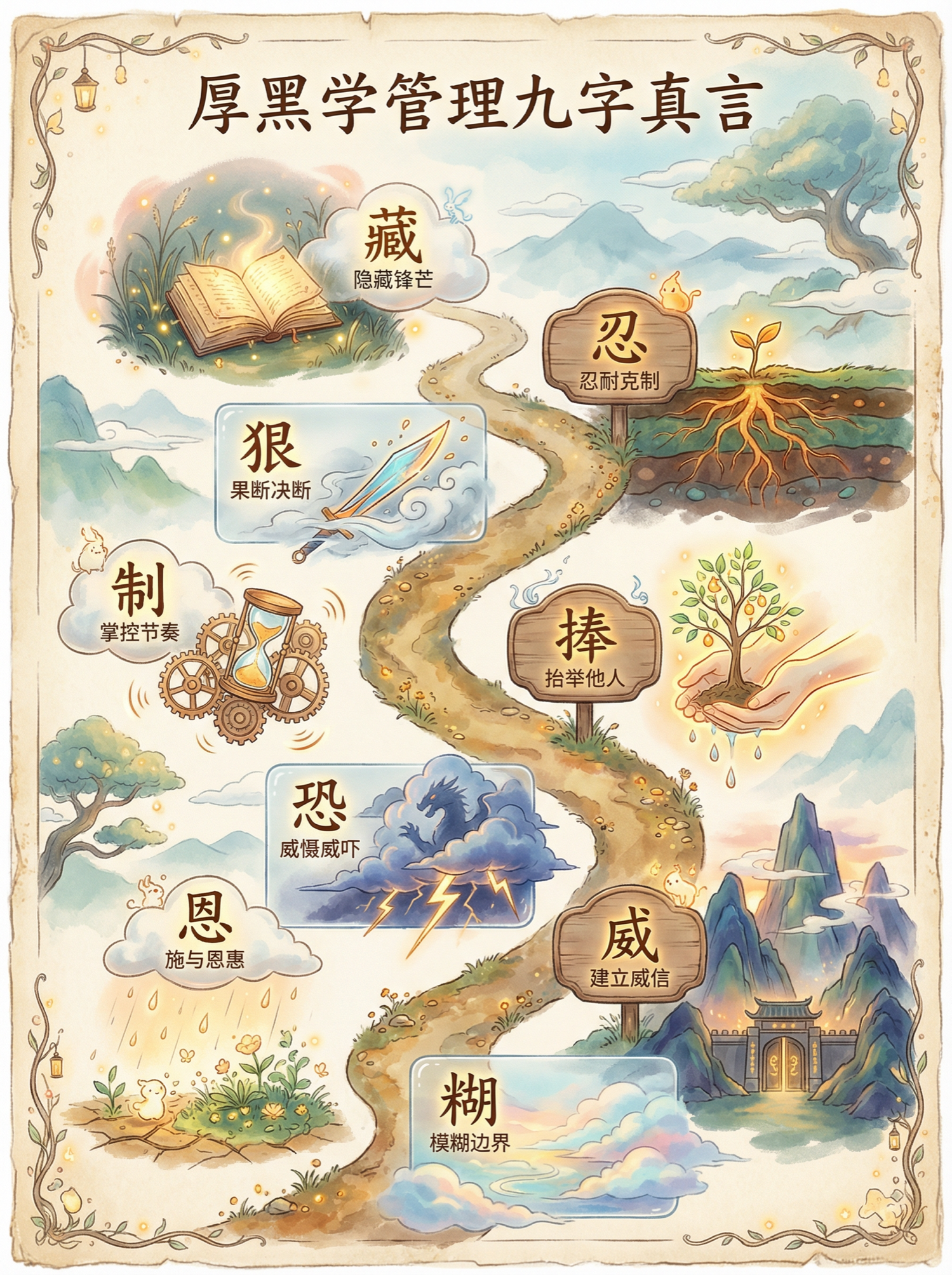 * **核心背景**:【柔和的自然色调(如天空的淡蓝、云朵的米白、草地的嫩绿、泥土的浅棕)或温暖的浅色(如米白、淡黄),并带有微妙的手绘纹理或水彩渲染效果】。