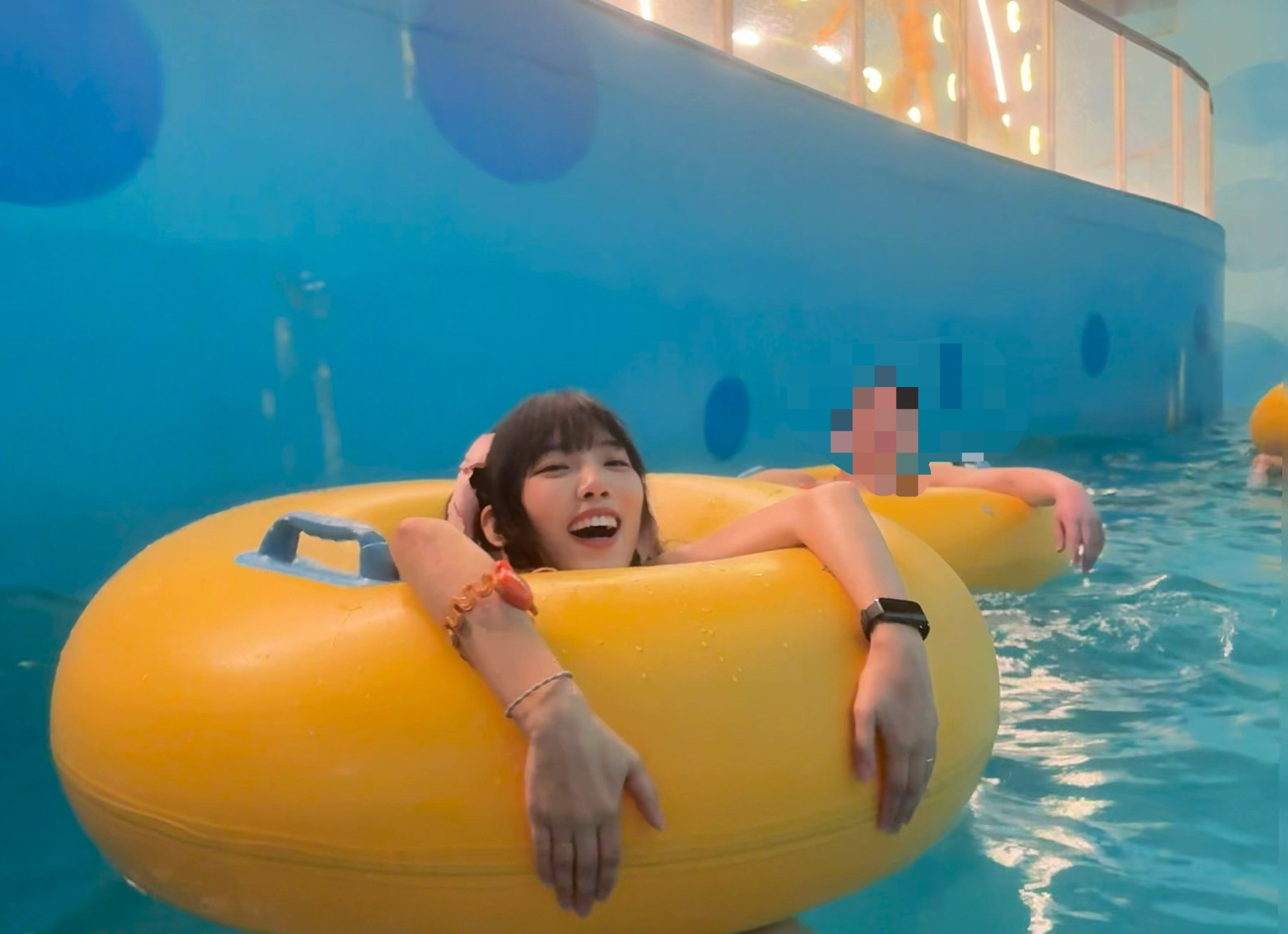 游泳圈要是考虑做小的就好了,不坐上像逃难来的
